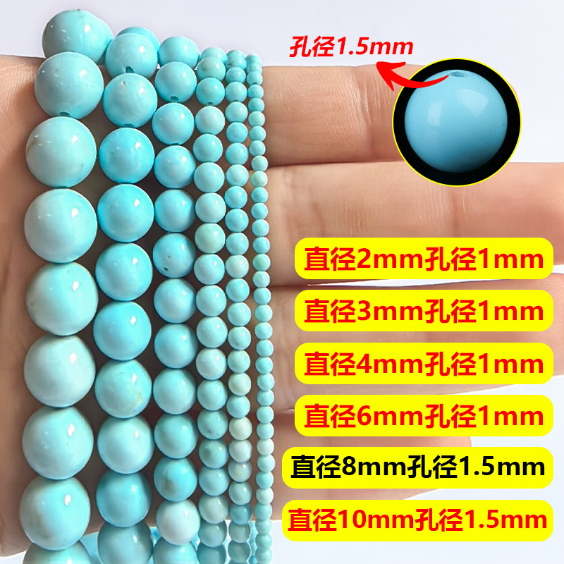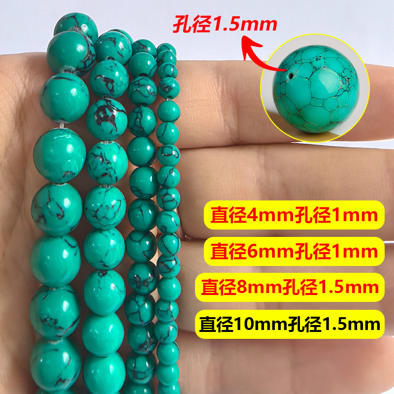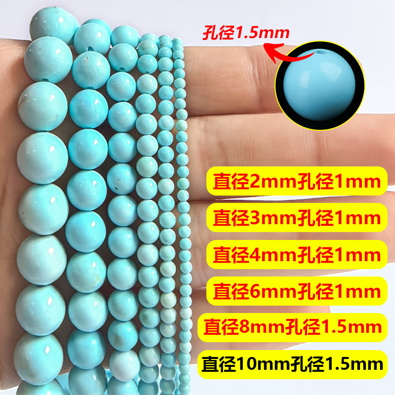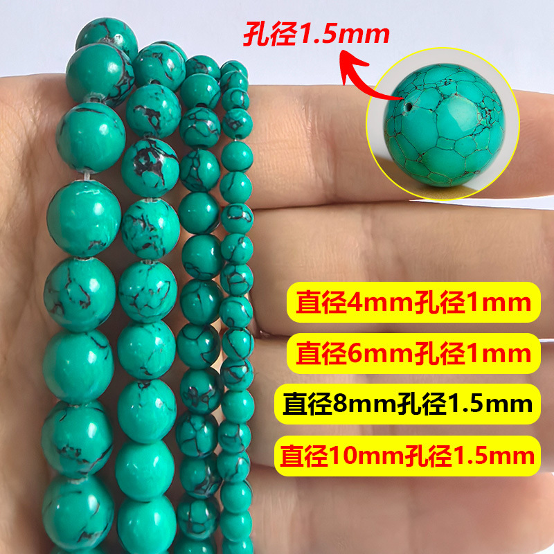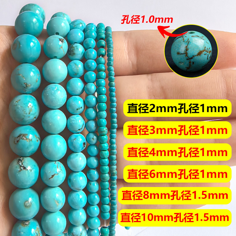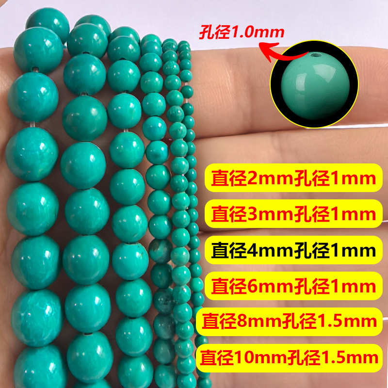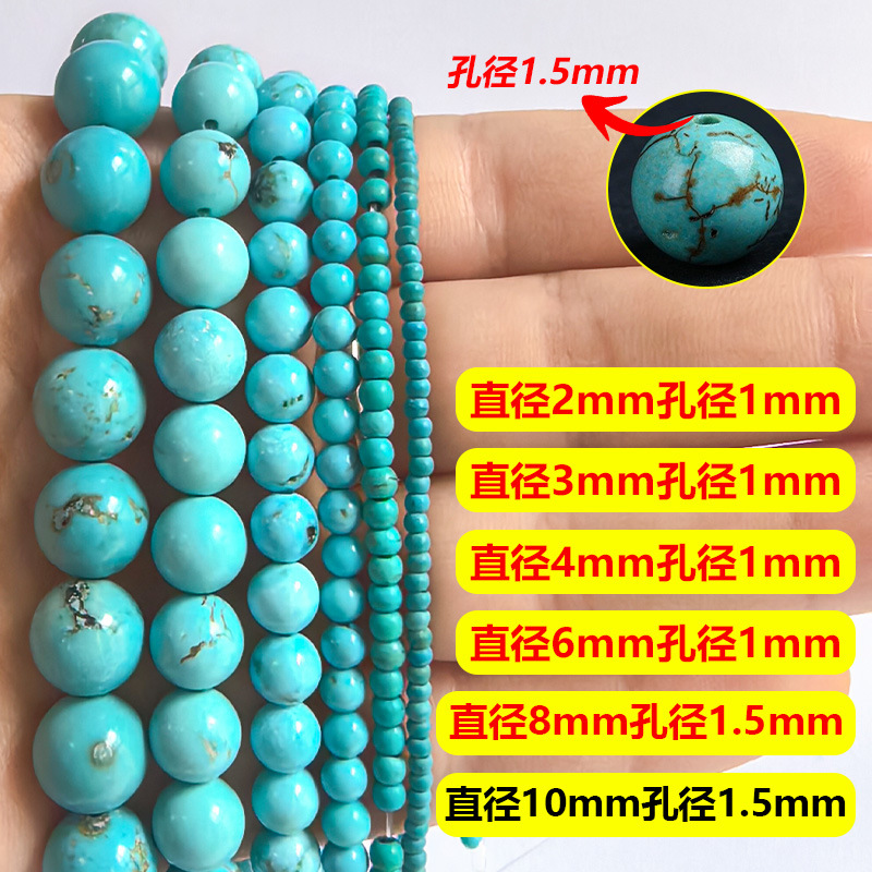 涛天然绿松石散珠高瓷散珠整条玉石配珠圆珠串珠半成品diy材料珠