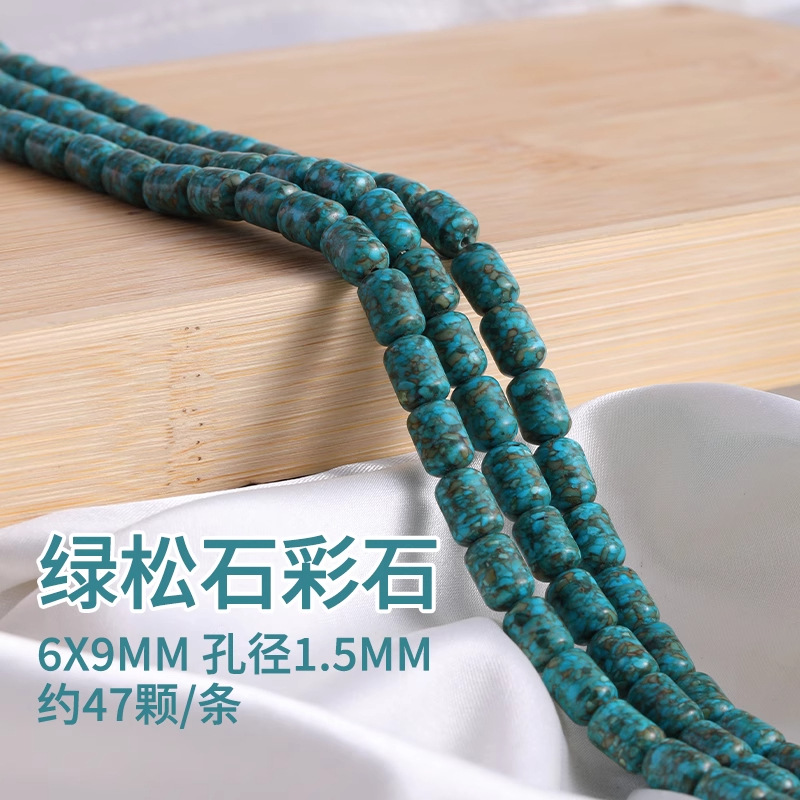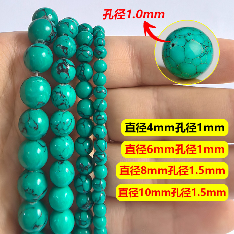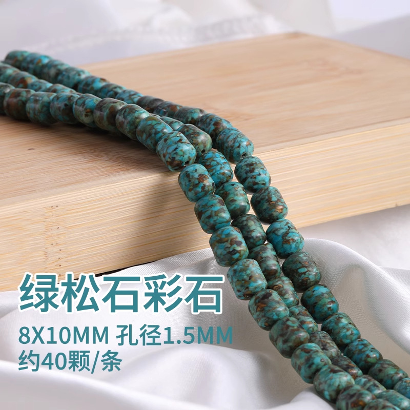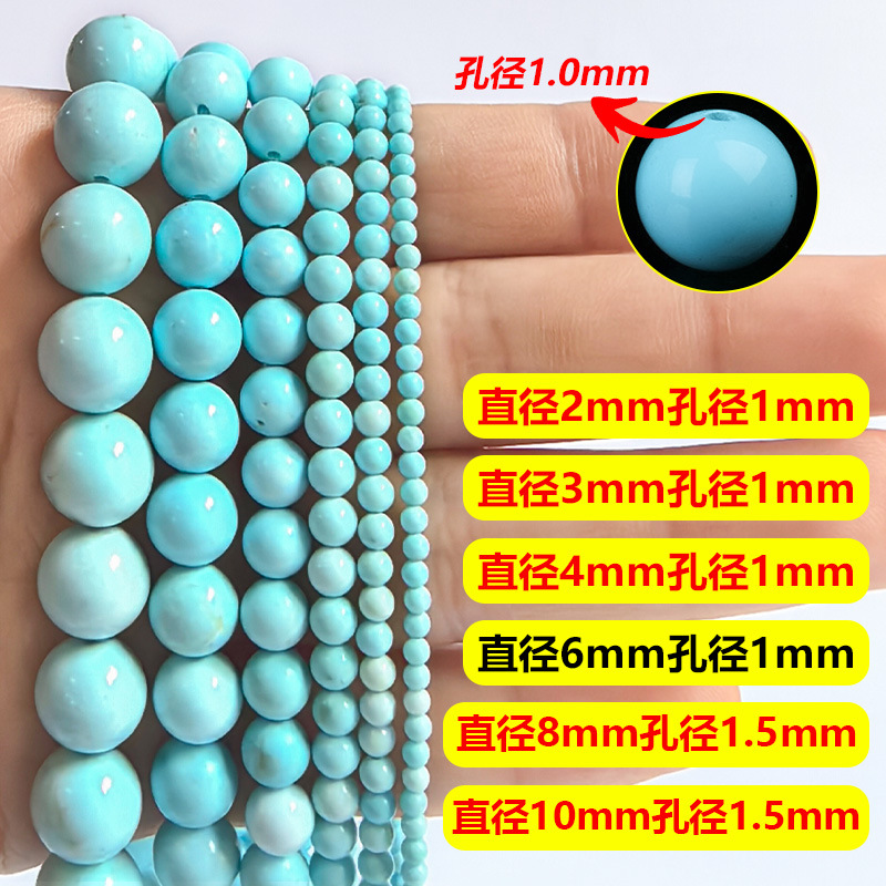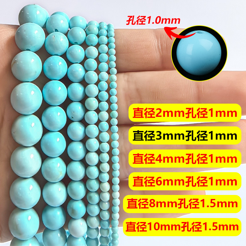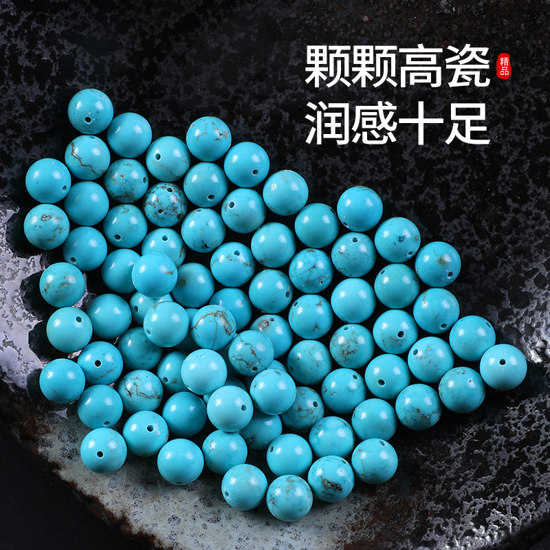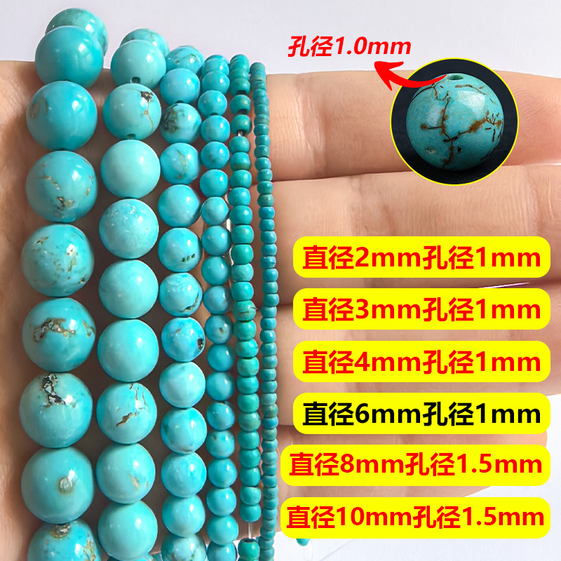 涛天然绿松石散珠高瓷散珠整条玉石配珠圆珠串珠半成品diy材料珠