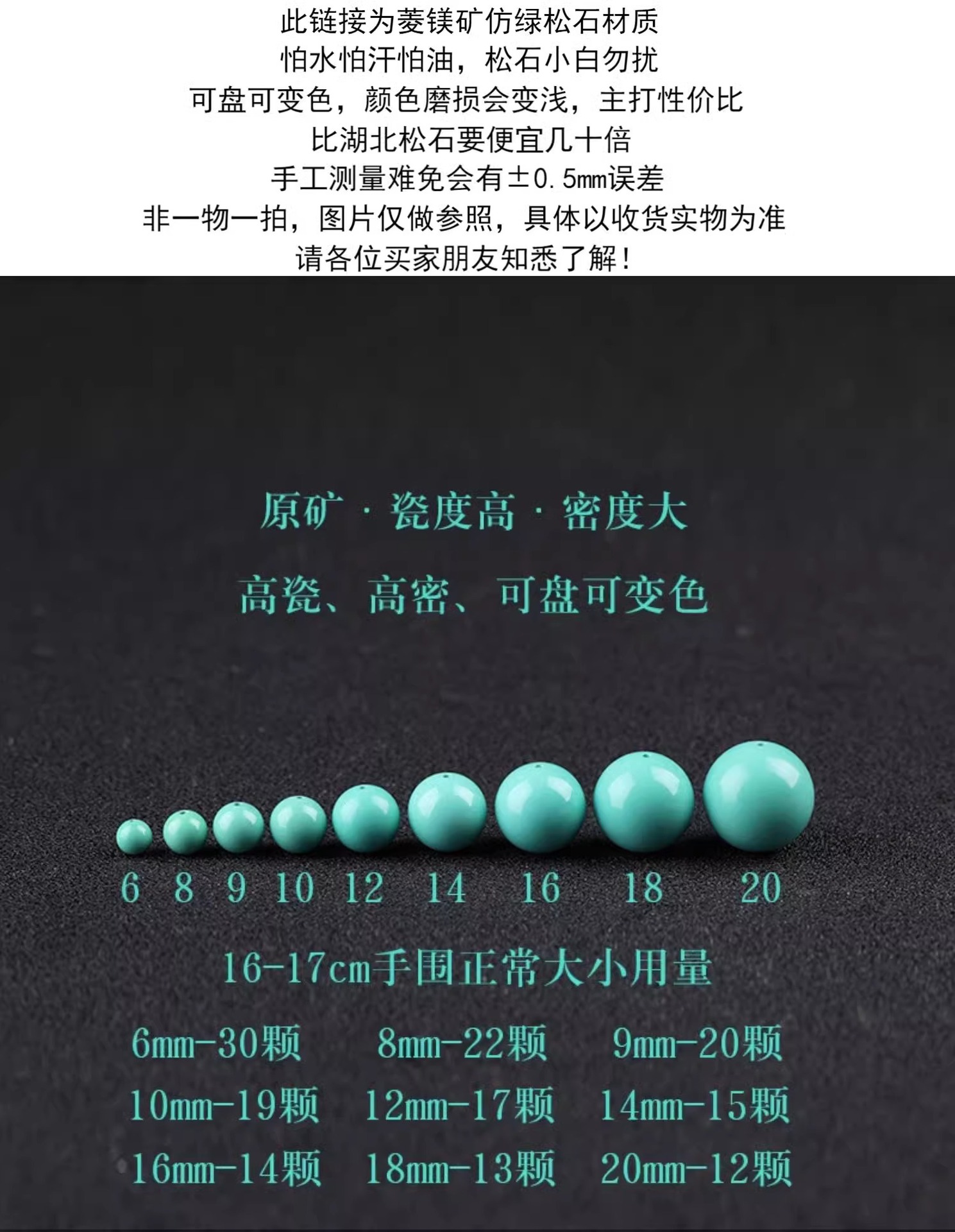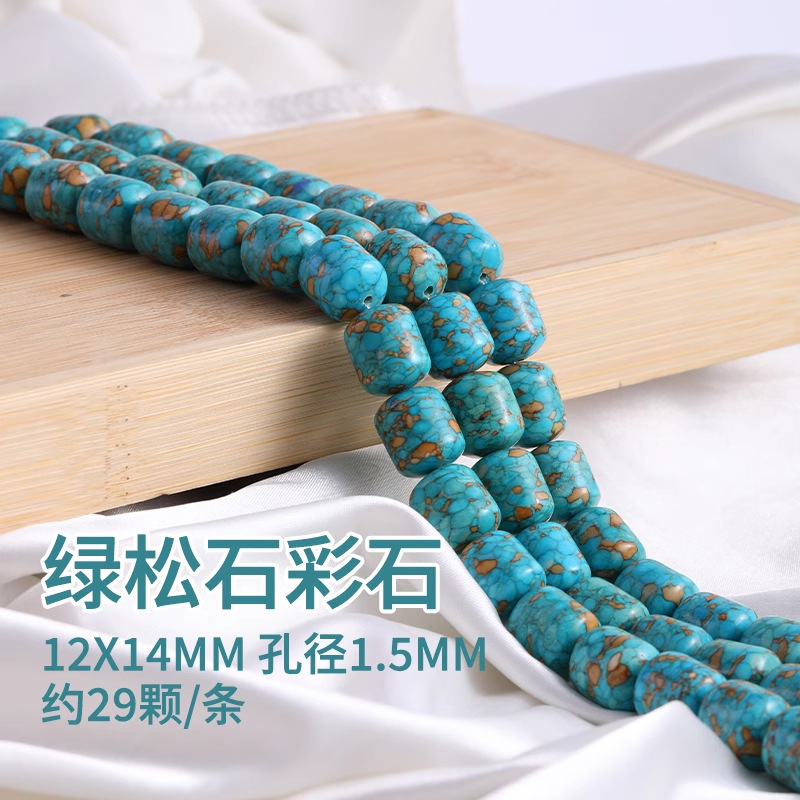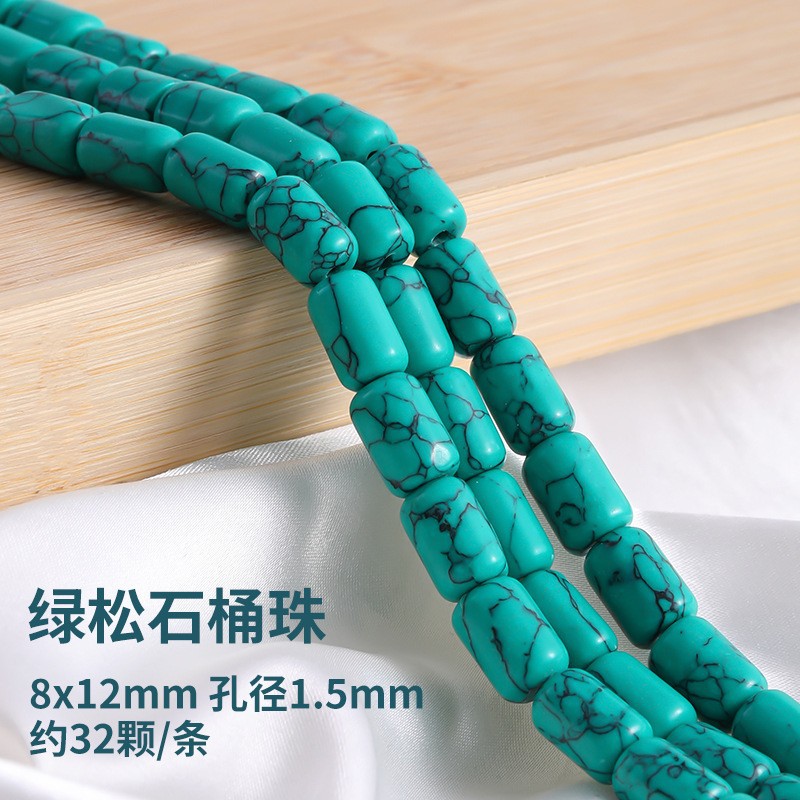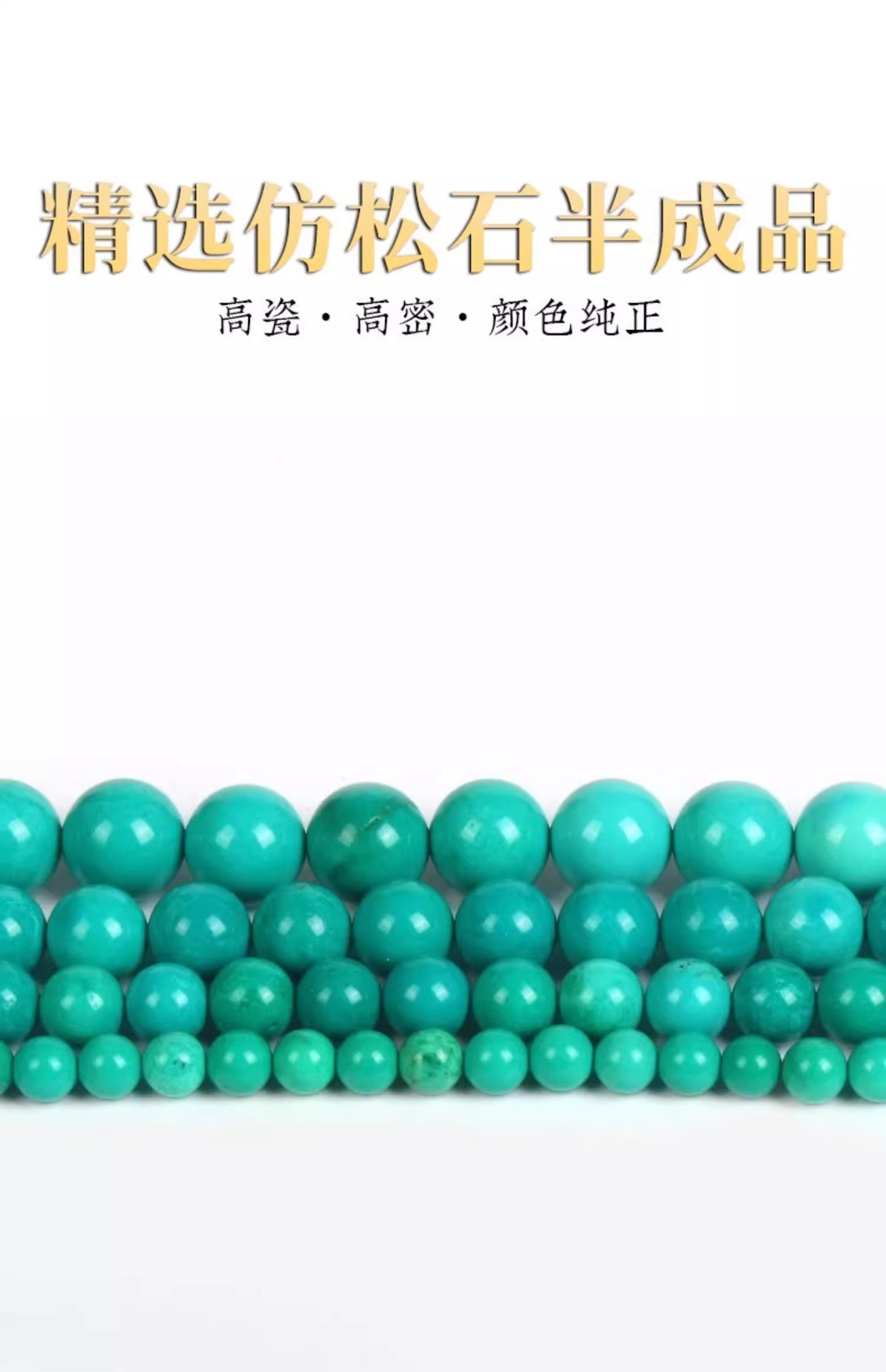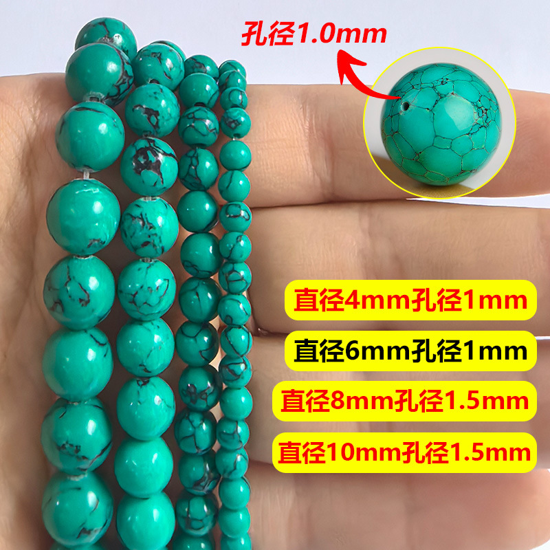 涛天然绿松石散珠高瓷散珠整条玉石配珠圆珠串珠半成品diy材料珠
