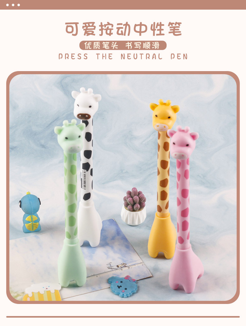 卡通可爱长颈鹿中性笔高颜值仿真造型学生文具顺滑水笔精美签字笔