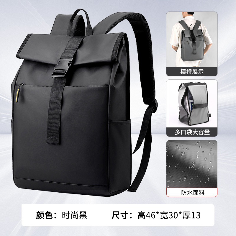 跨境时尚男士双肩包高级感休闲旅行女背包轻便防水电脑包通勤书包
