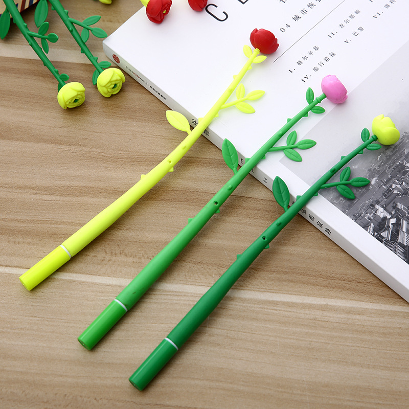 韩国新款创意学生礼物学习文具玫瑰花草黑色中性笔办公签字笔定制
