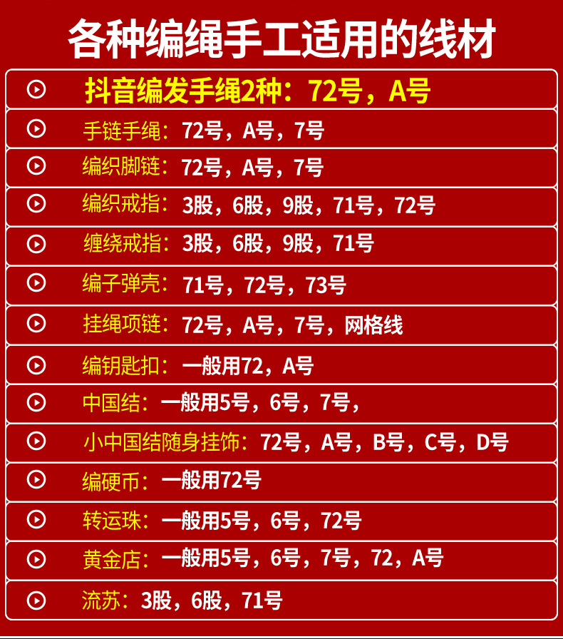 | red rope thread(红绳线) | USD $0.51 | 998837 piece available |