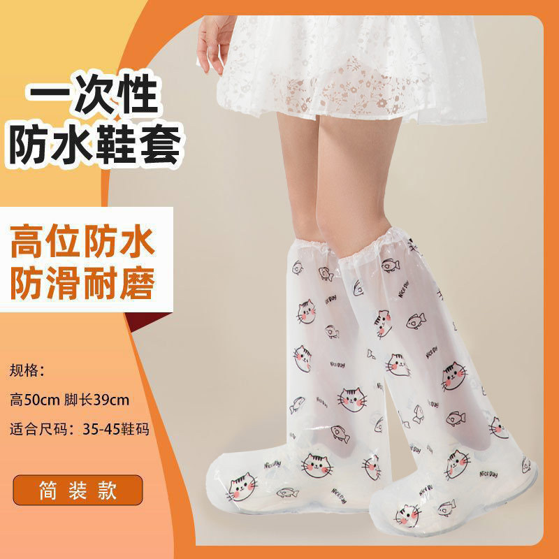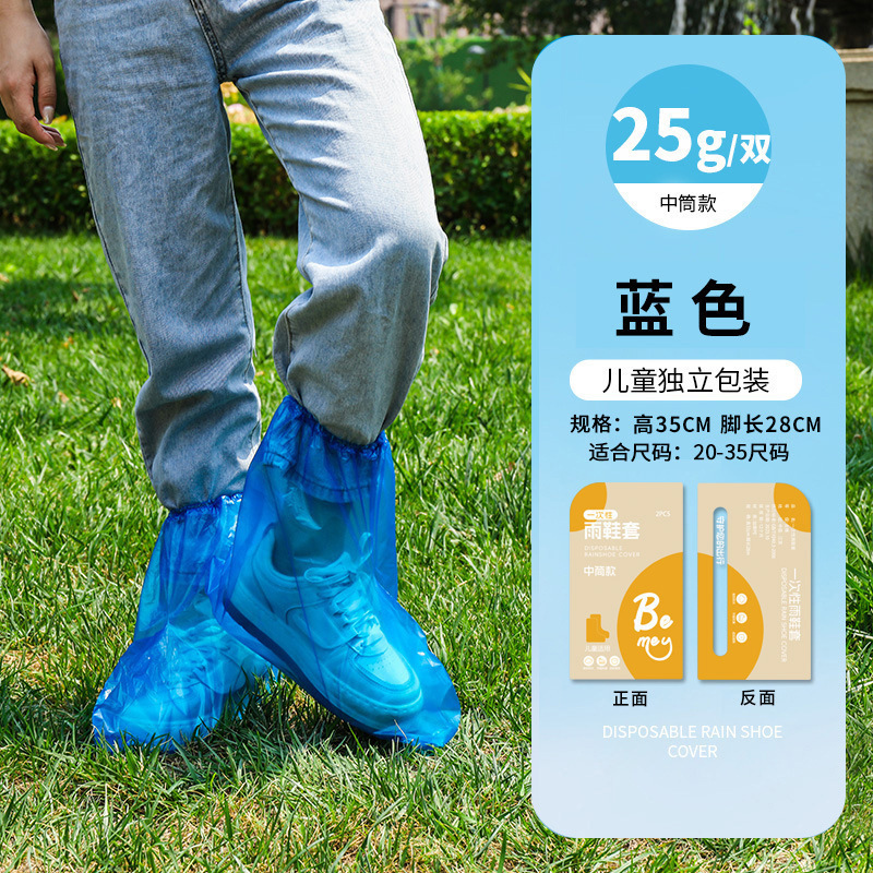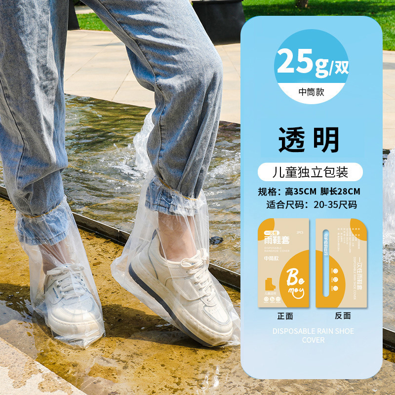 新款一次性鞋套成人儿童雨天防水雨鞋套PE中筒耐磨高筒防雨脚套