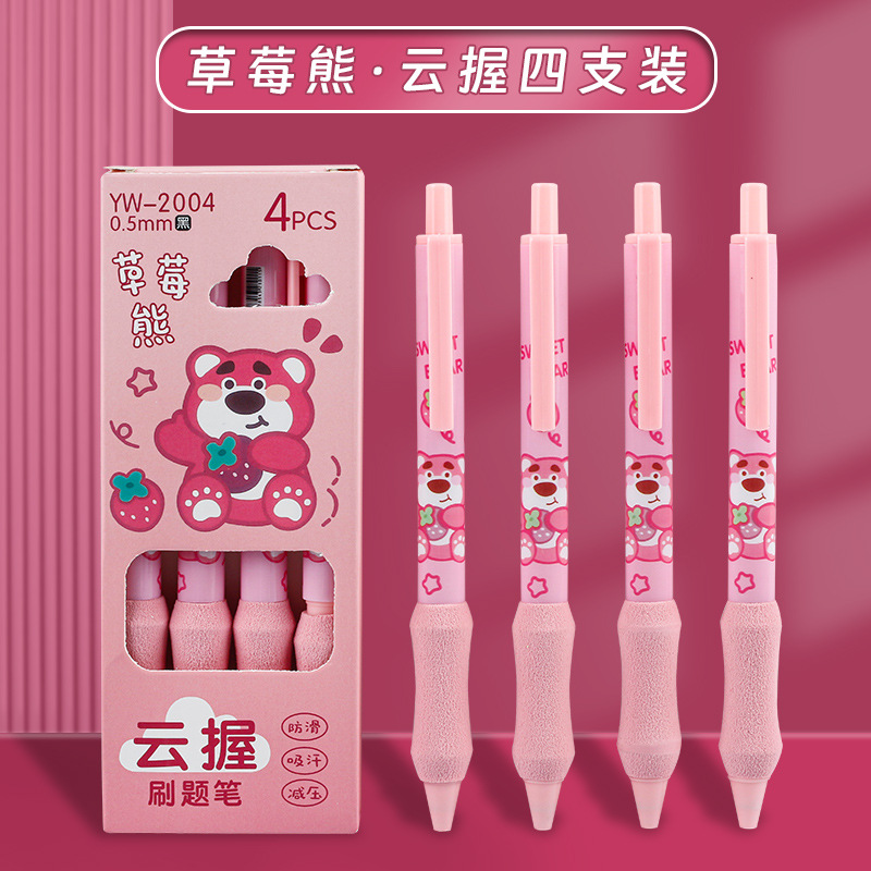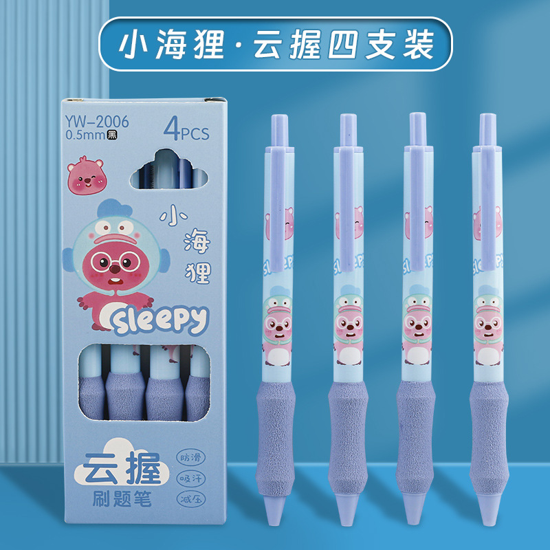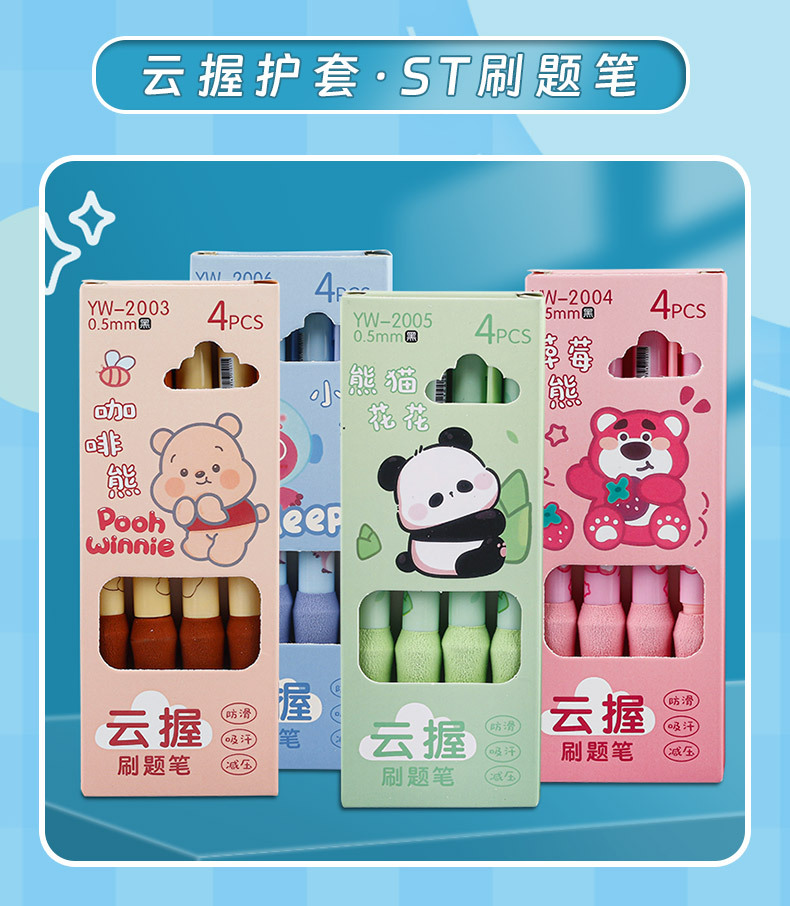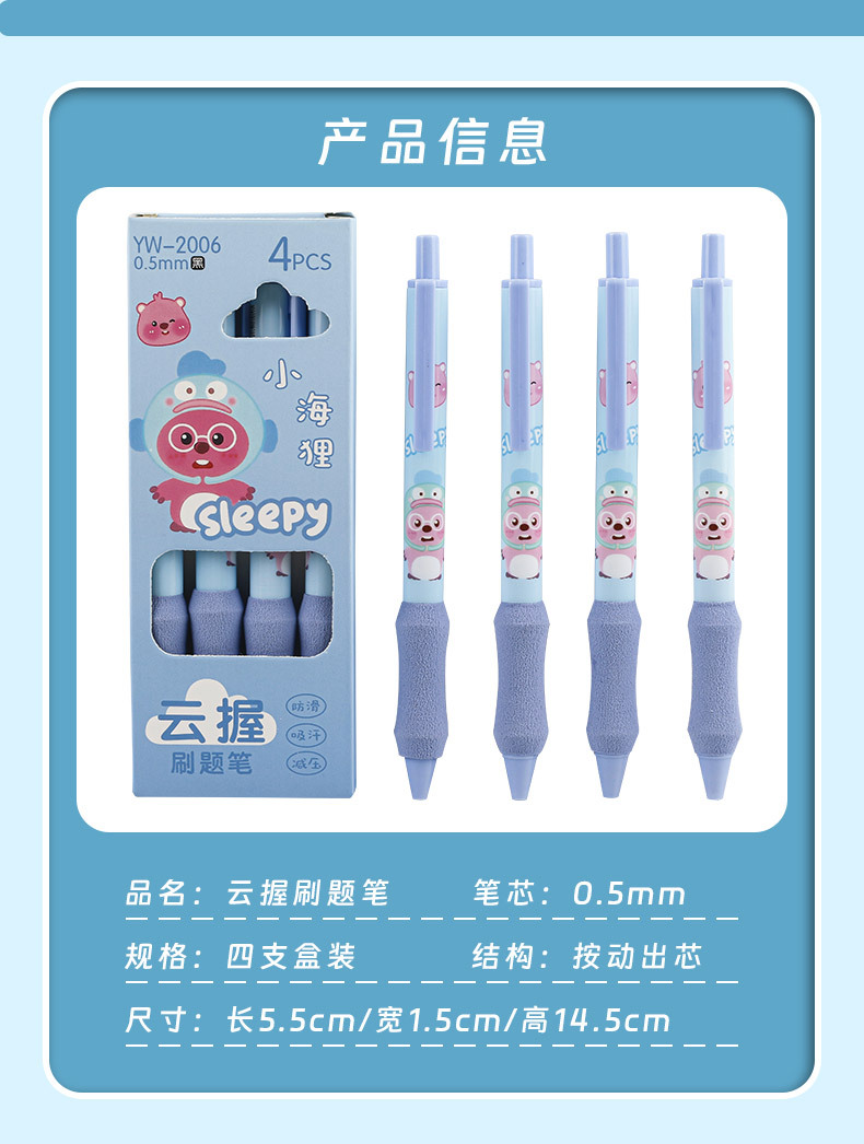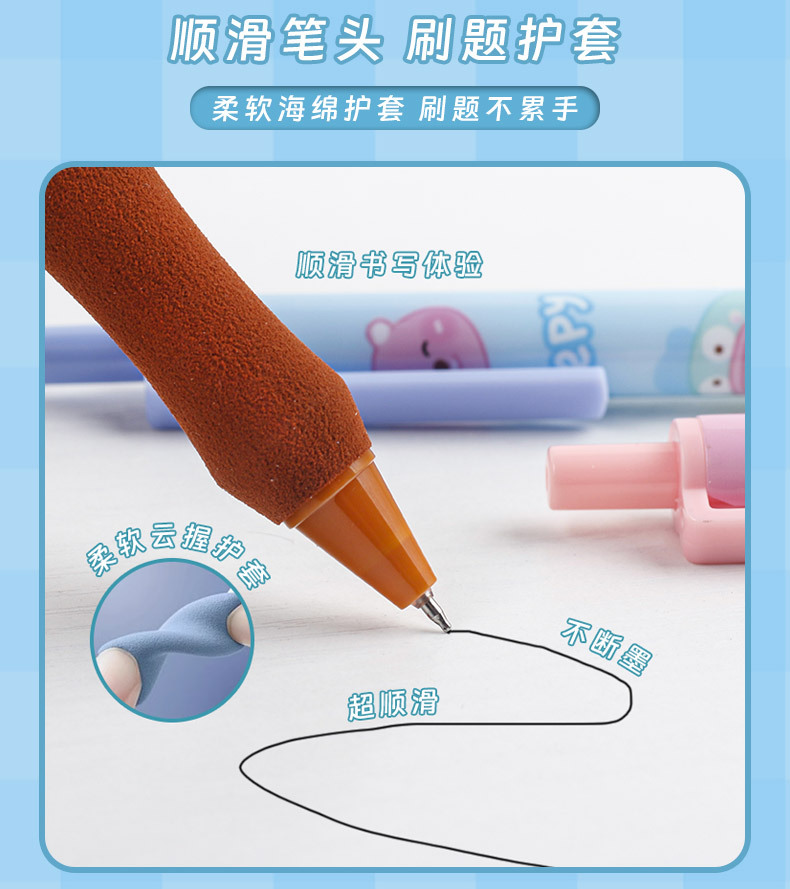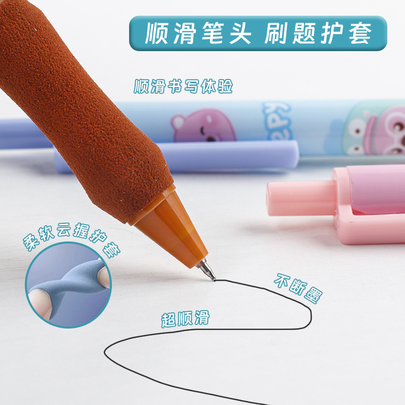 可爱绵绵笔学生考试速干高颜值卡通软握刷题笔盒装0.5mm黑色水笔