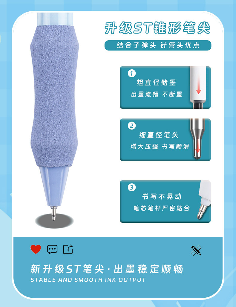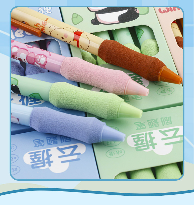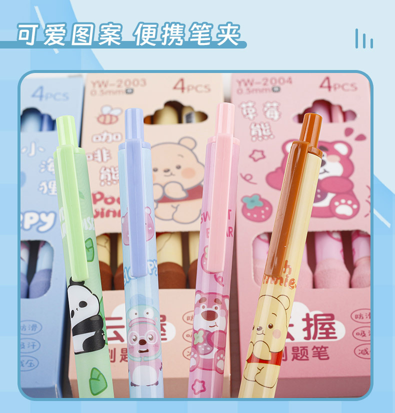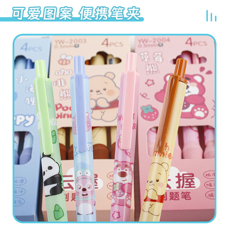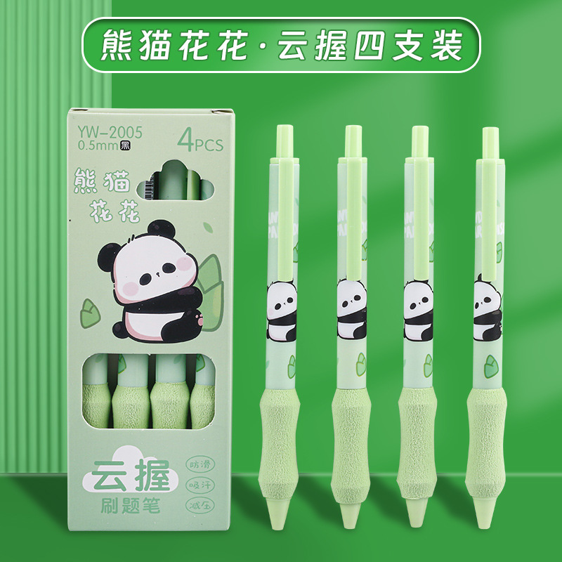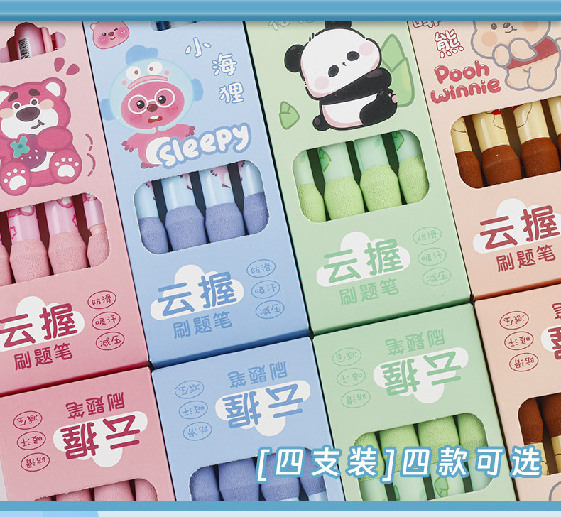 可爱绵绵笔学生考试速干高颜值卡通软握刷题笔盒装0.5mm黑色水笔