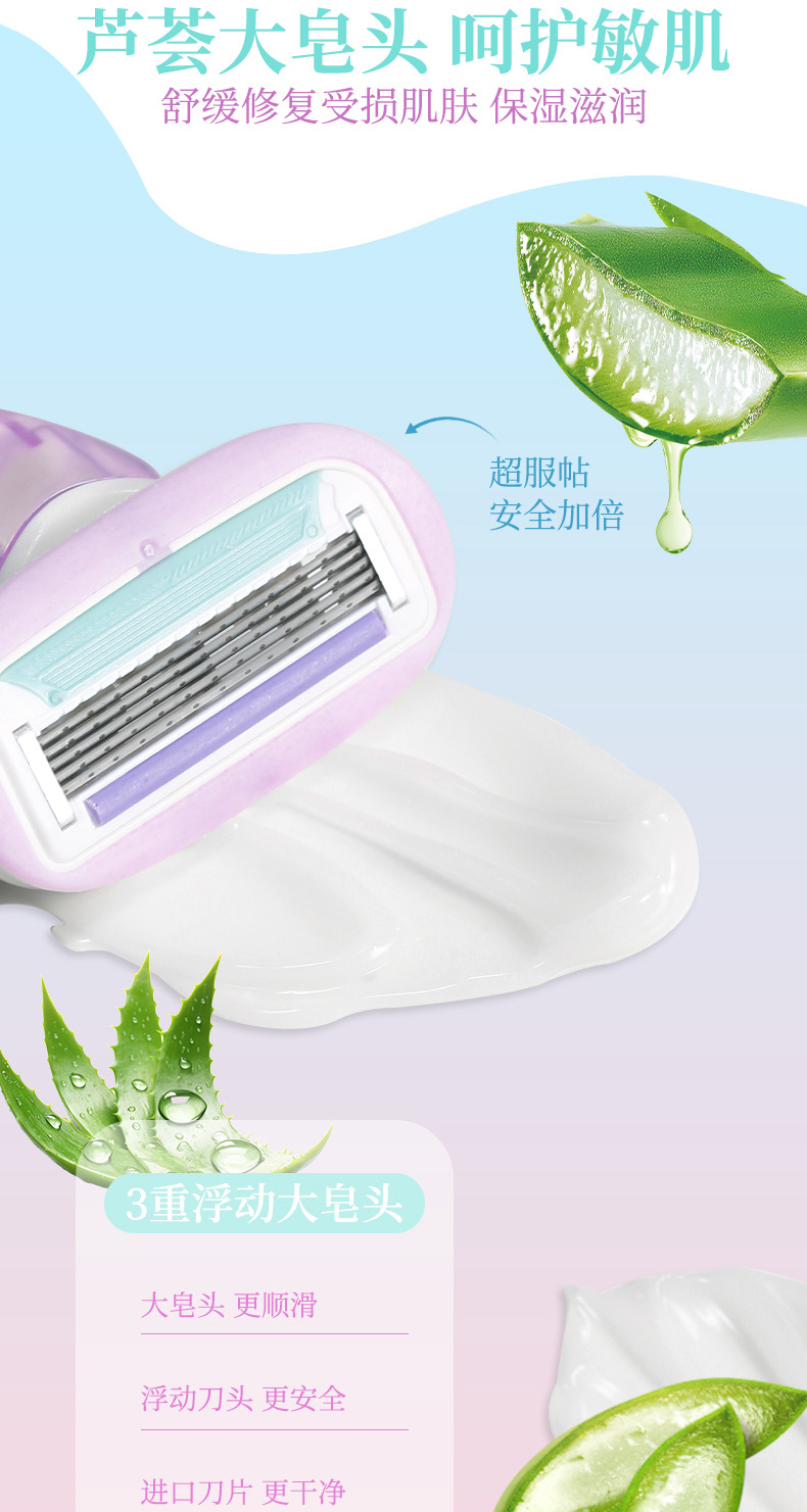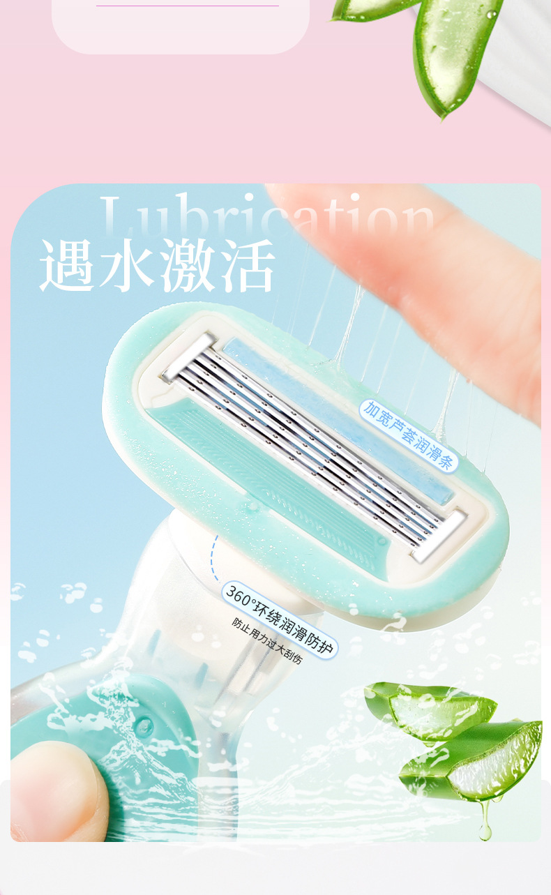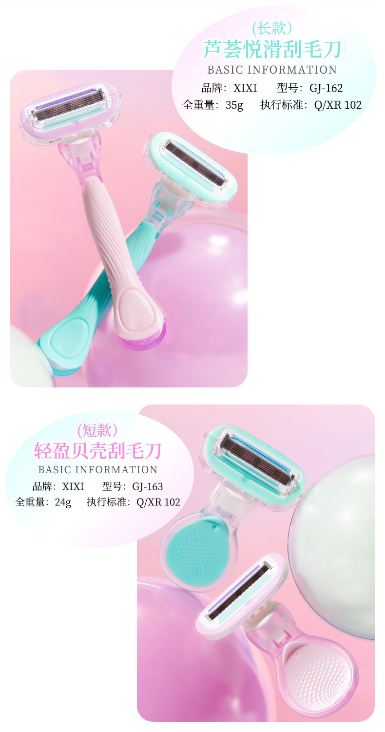 xixi芦荟悦滑刮毛刀女士防刮伤脱毛剃毛刀芦荟头防滑手动长短柄款