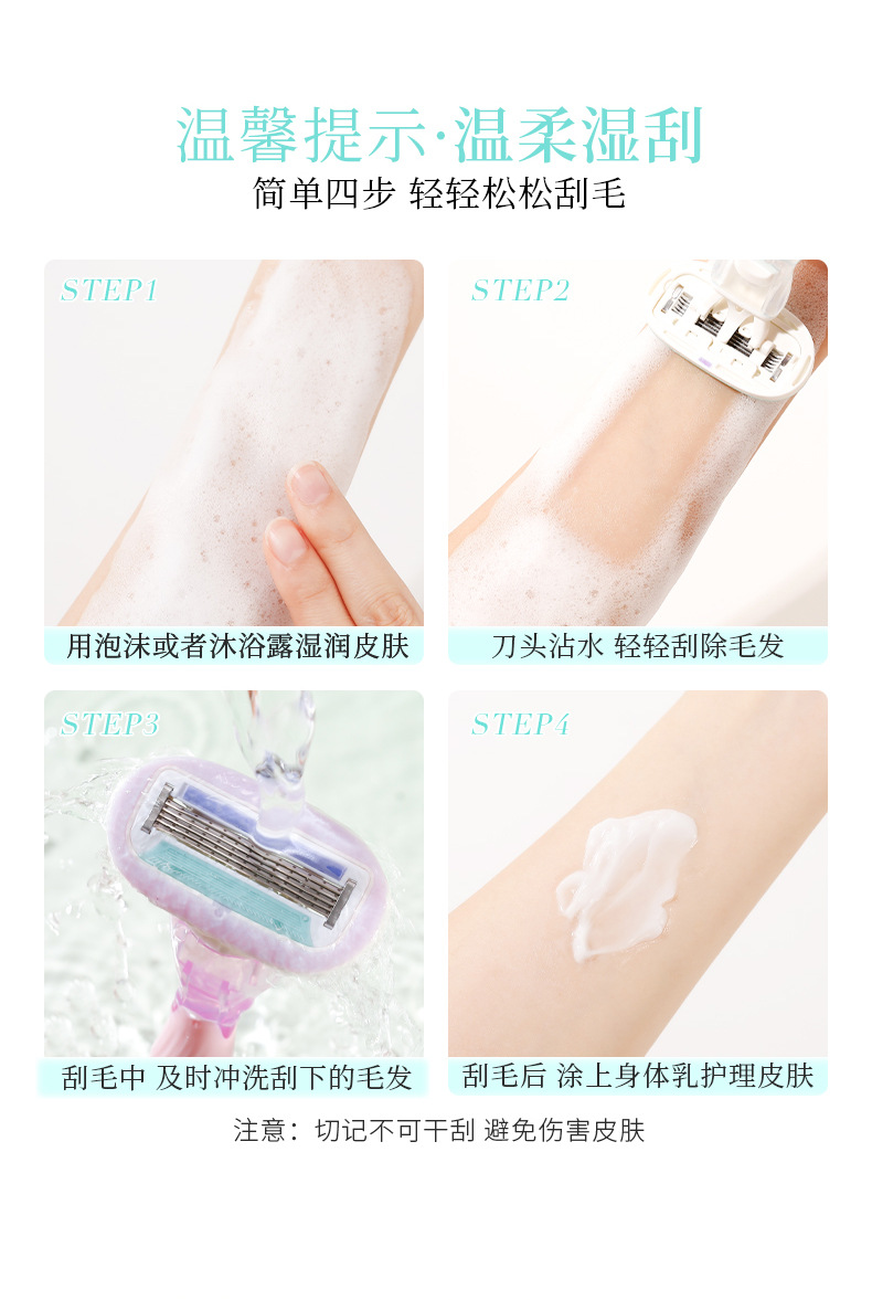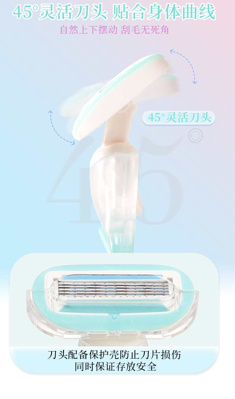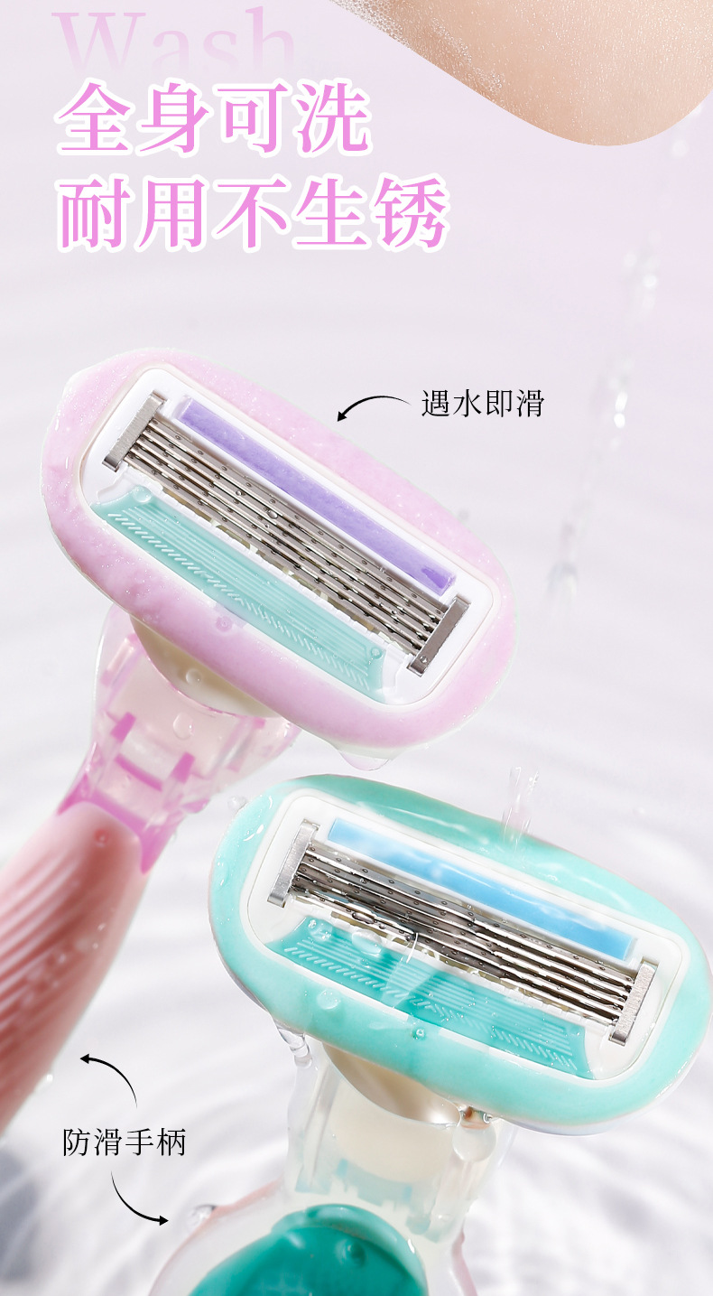 xixi芦荟悦滑刮毛刀女士防刮伤脱毛剃毛刀芦荟头防滑手动长短柄款