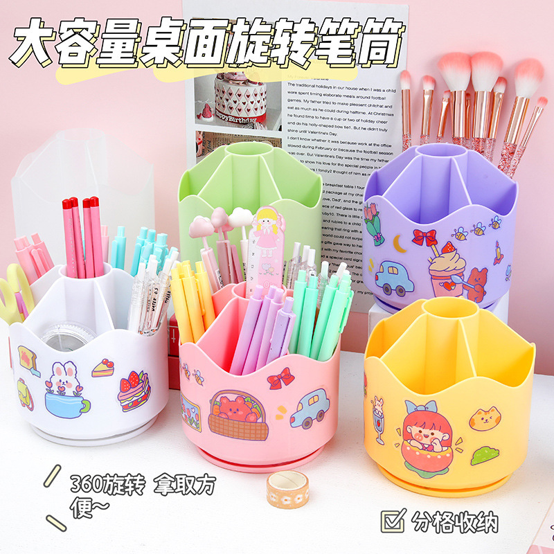 360度旋转笔筒 大容量简约创意学生桌面文具笔盒多功能装笔收纳