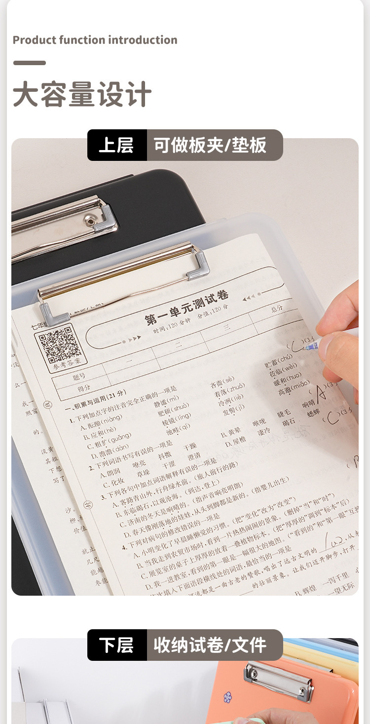 奶油色多功能学生专用写字板试卷文件夹收纳盒方便携带收纳板批发