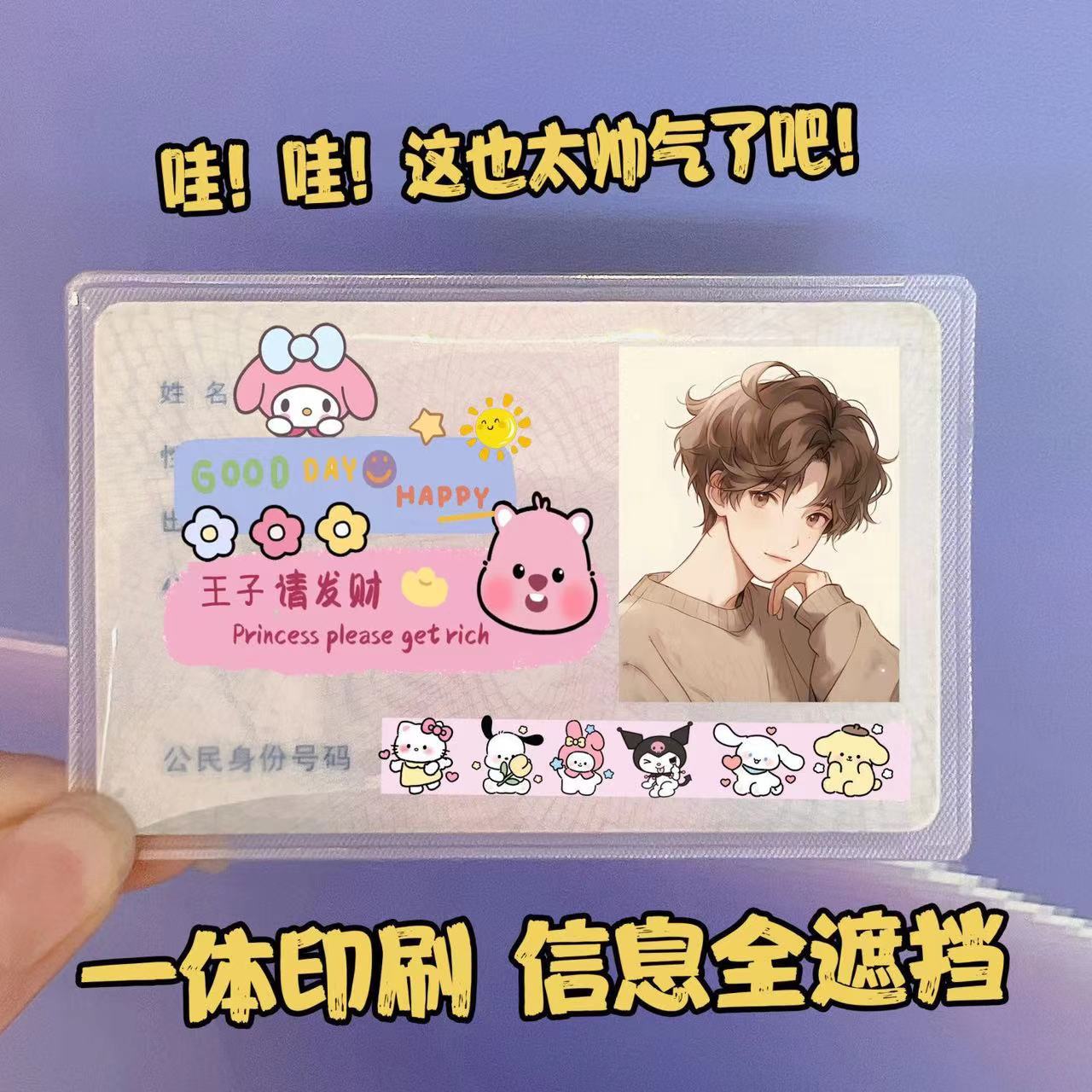 小红书情侣款身份证套挡脸头套身份证PU可爱卡套保护套透明防磁卡
