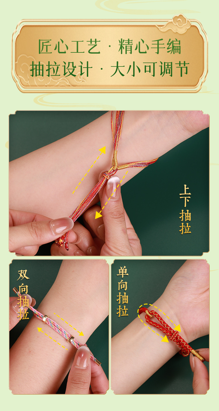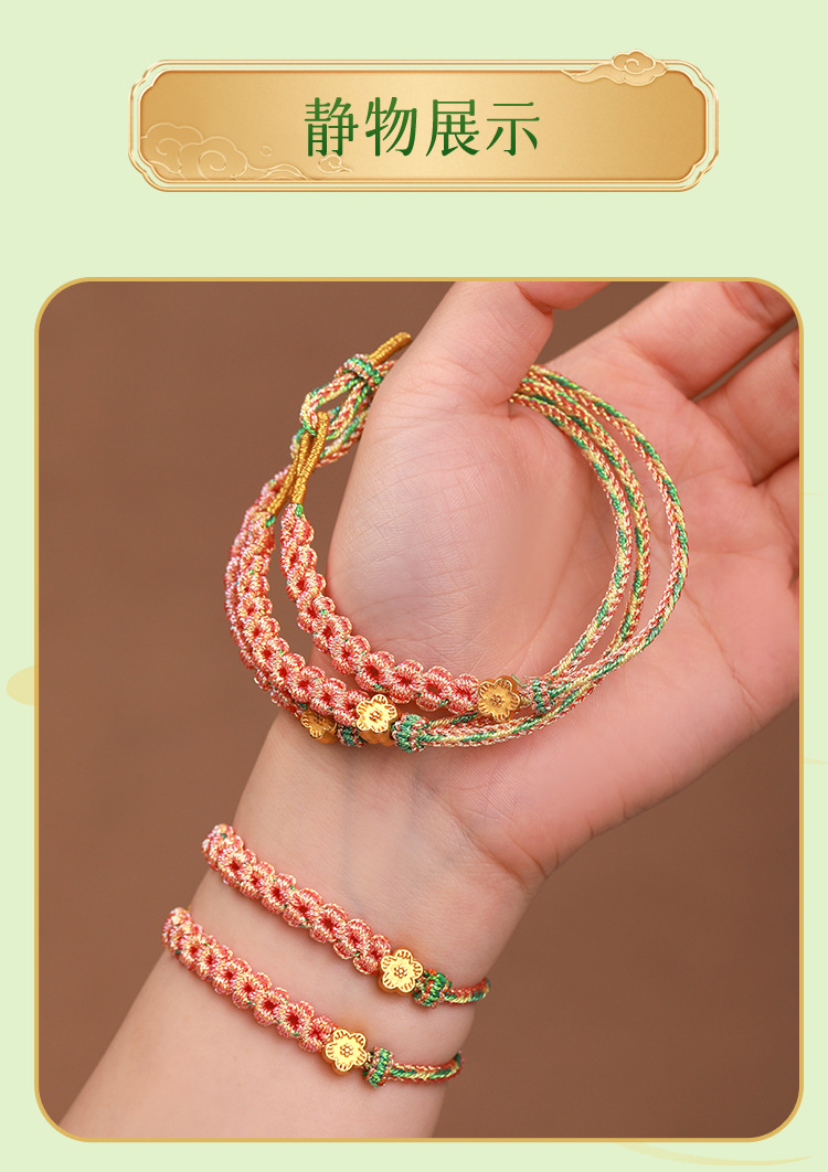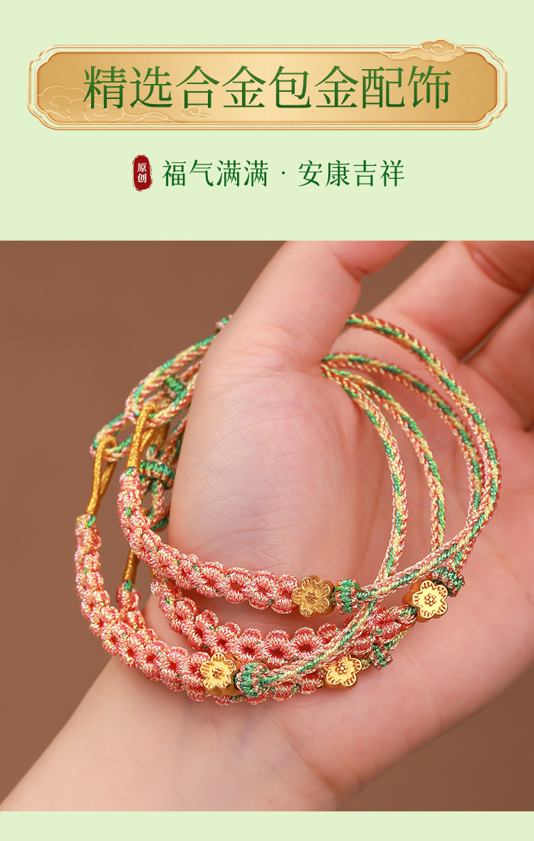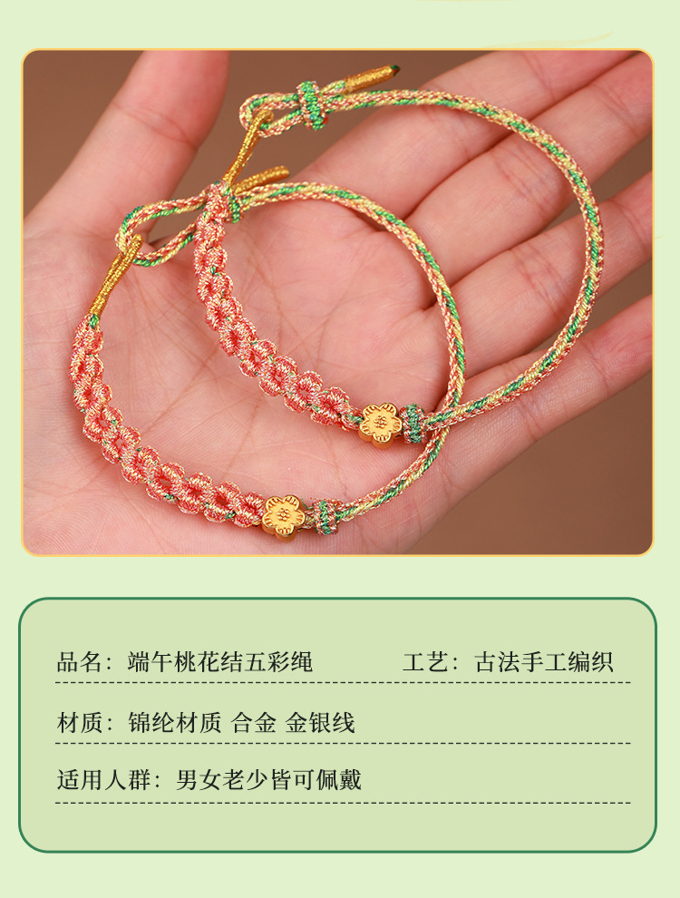 多色桃花结手绳手链手工编织成人送情侣手链可调节大小手绳编织绳
