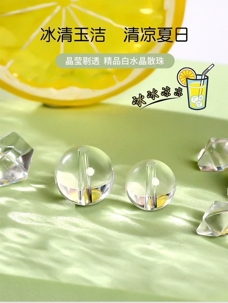 白水晶圆珠冰透珠子散珠手工diy串珠手链设计款男女士细手串配珠