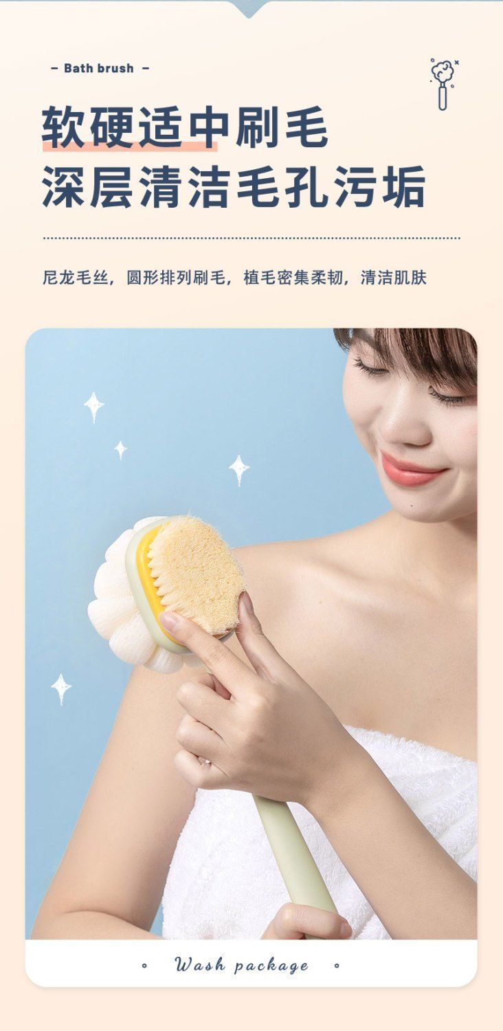 搓澡巾长柄软毛双面沐浴刷二合一搓背搓澡神器多功能洗澡刷