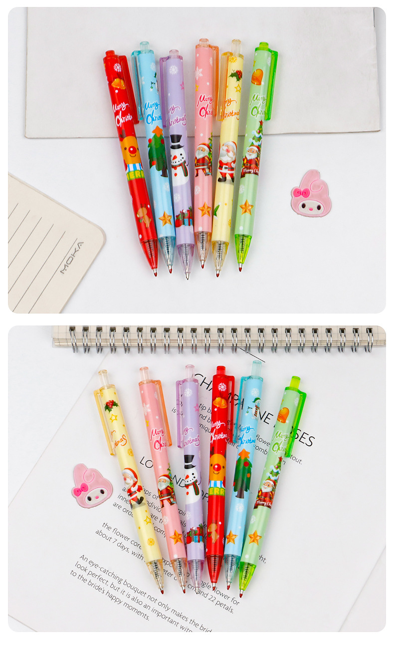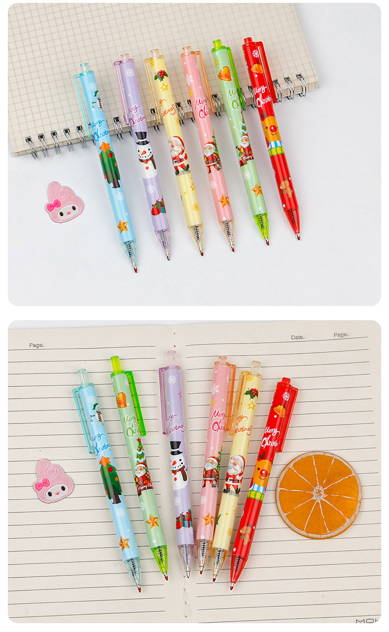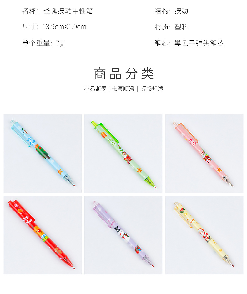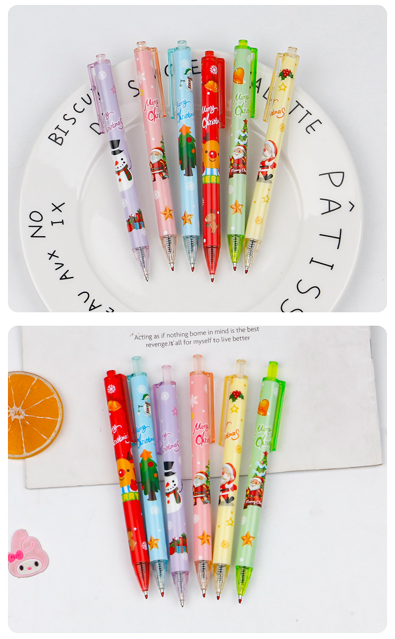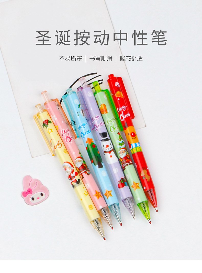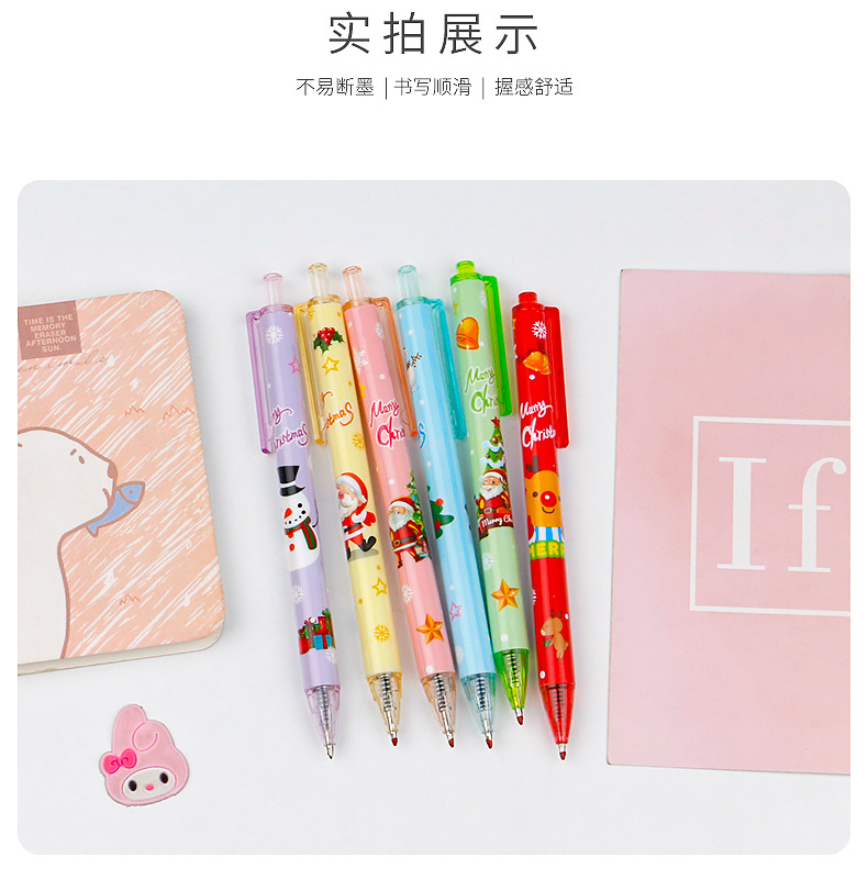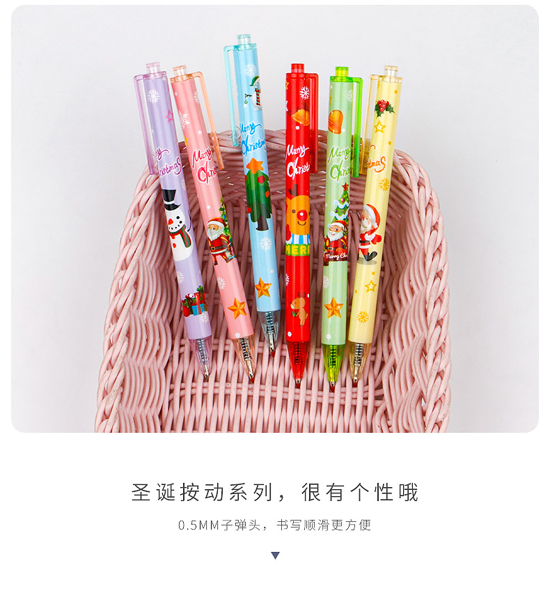 圣诞礼品奖品圣诞老人圣诞树驯鹿雪人卡通按动中性笔学生书写水笔