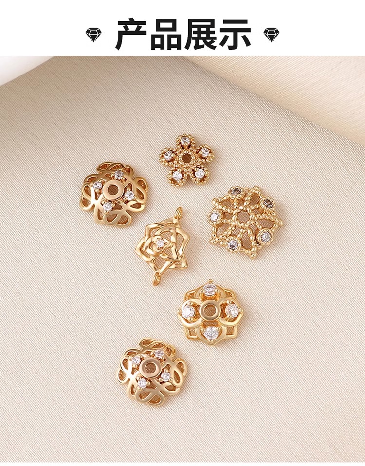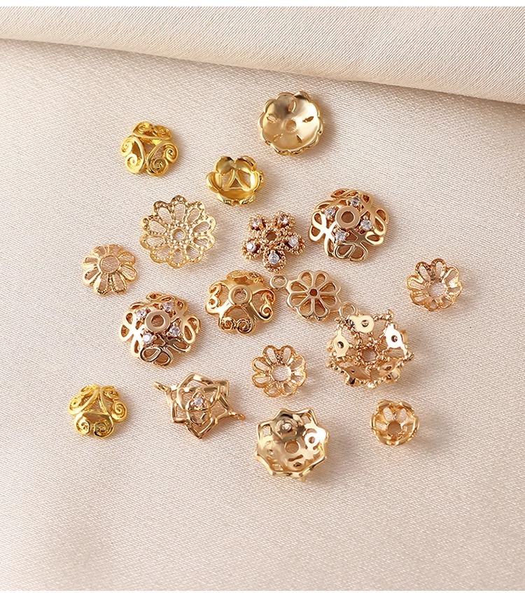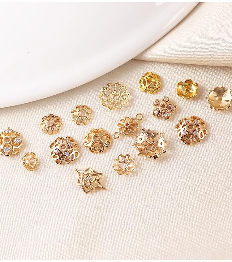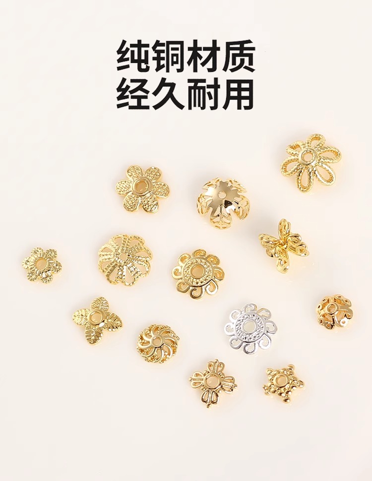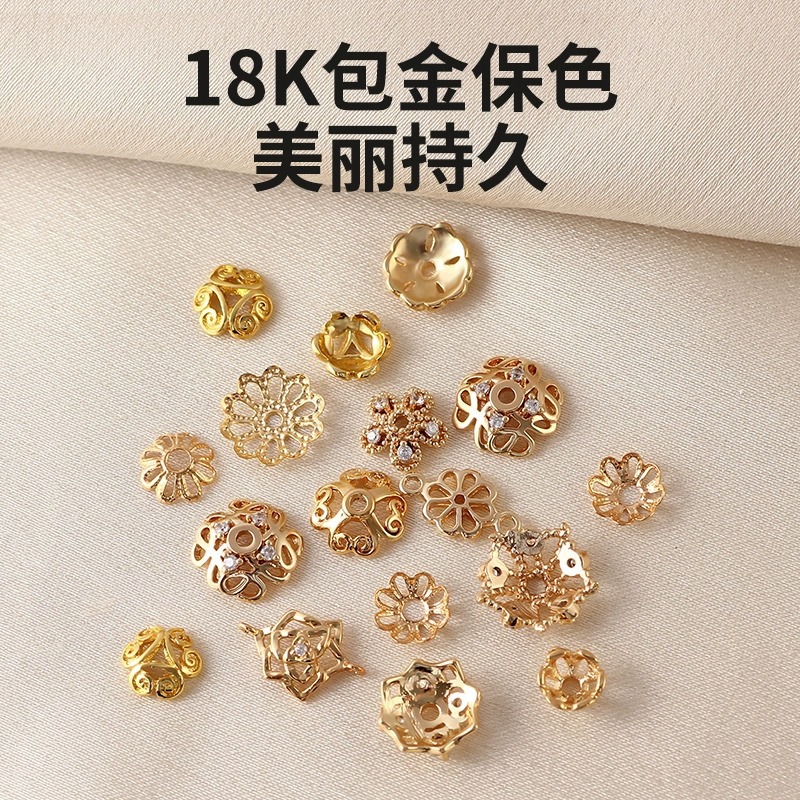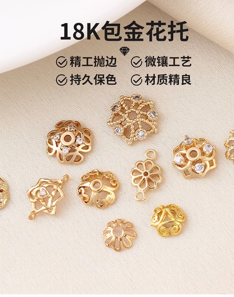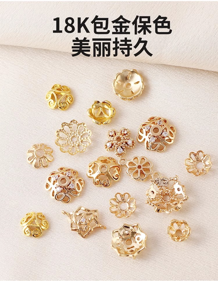 镀18k金水晶diy配件花托手串隔片珍珠手链串珠花帽垫片小配饰材料