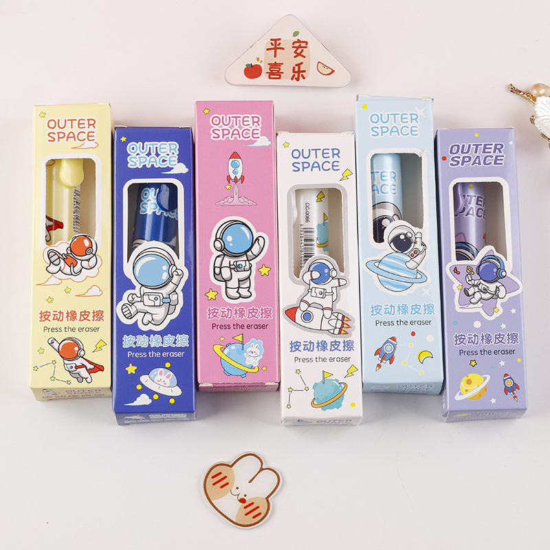 宇航员按动橡皮擦学生卡通正姿橡皮芯可替擦拭干净柔软铅笔擦