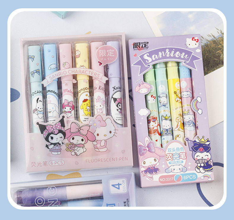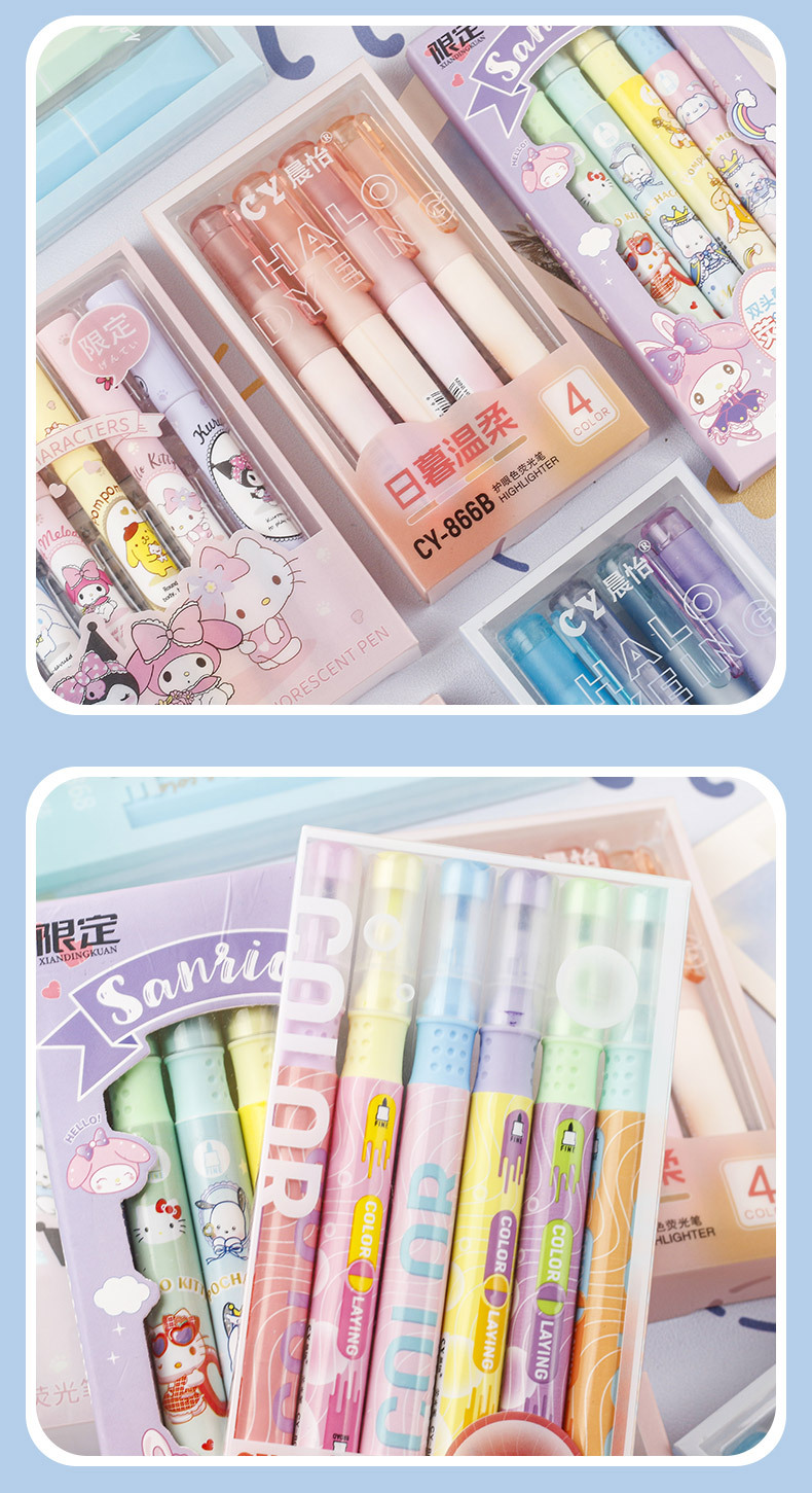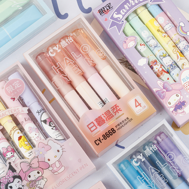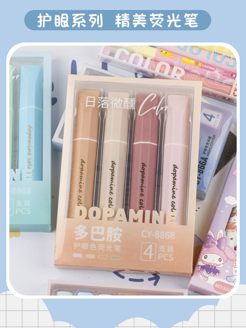厂家批发ins大耳狗多巴胺荧光笔划重点彩色记号大容量标记手帐笔