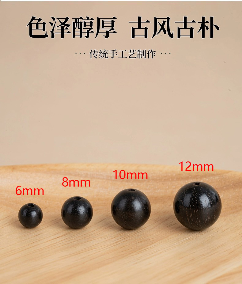 天然黑檀木圆珠佛珠手串黑檀木珠散珠手工diy配件黑檀木珠子散批