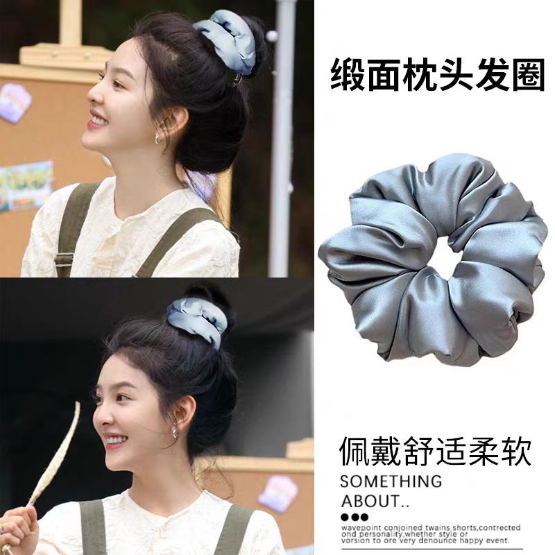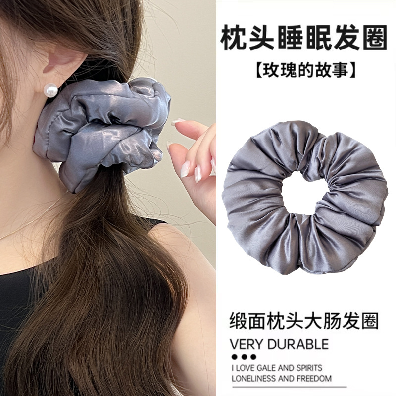 明星同款枕头睡眠大肠发圈女士纯色缎面发绳法式大号肥肠头绳发饰