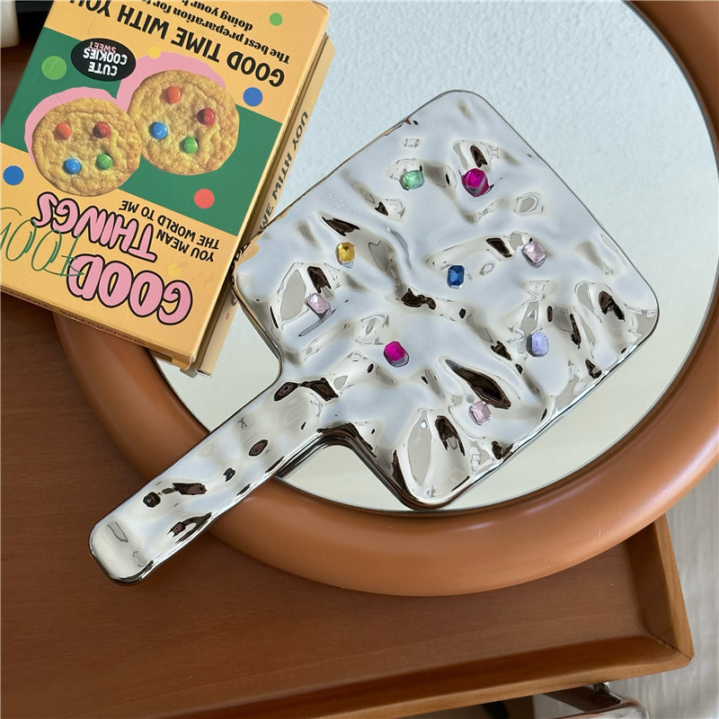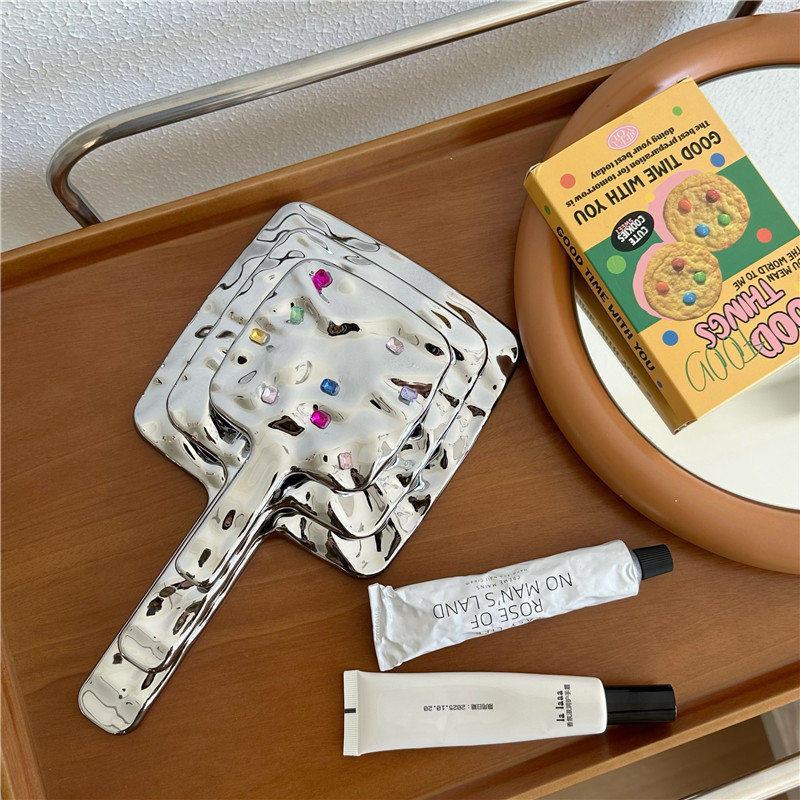 带钻辣妹手持化妆镜ins风高级感便携高清复古小镜子手柄式补妆镜