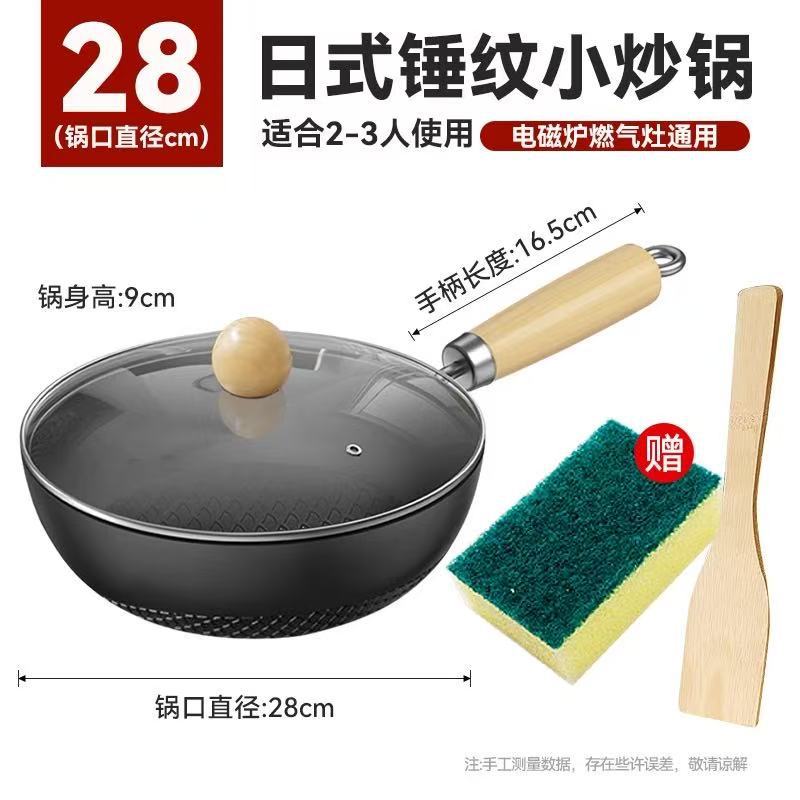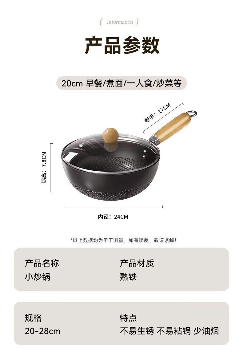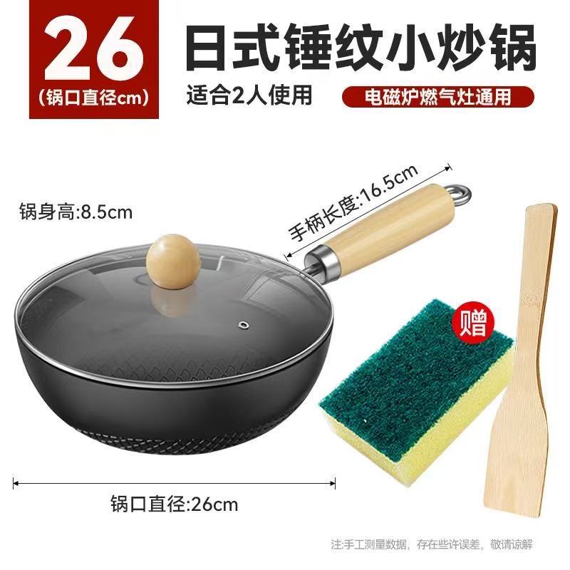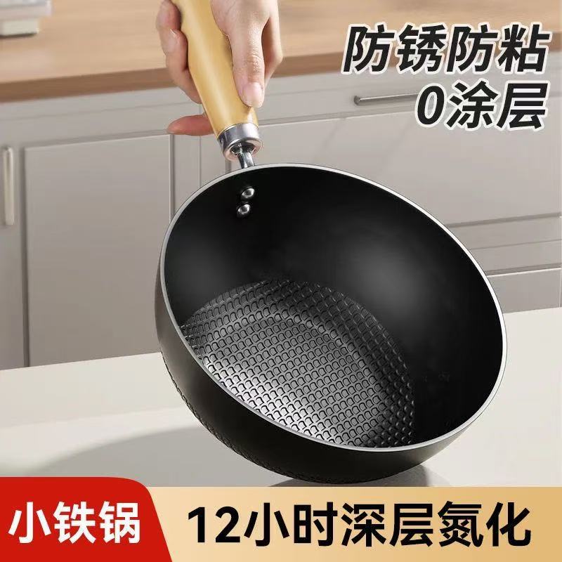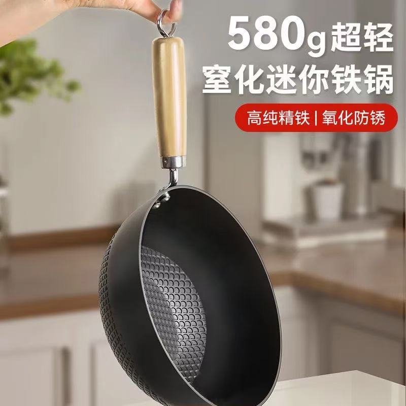 迷你小铁锅电磁炉家用炒锅燃气专用炒菜锅煎锅平底不粘锅无涂层