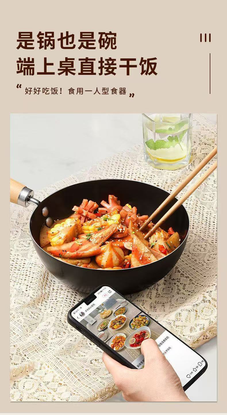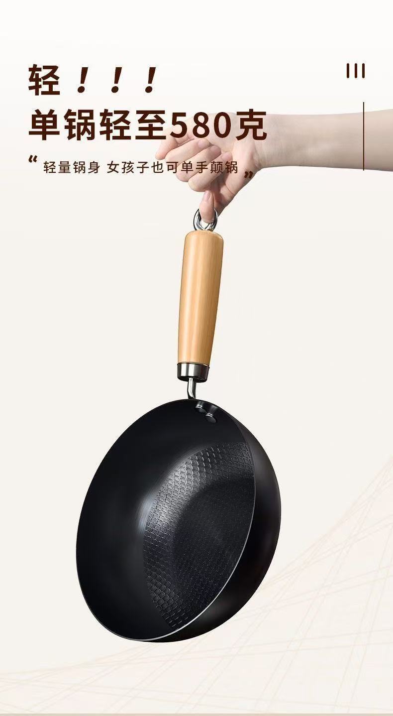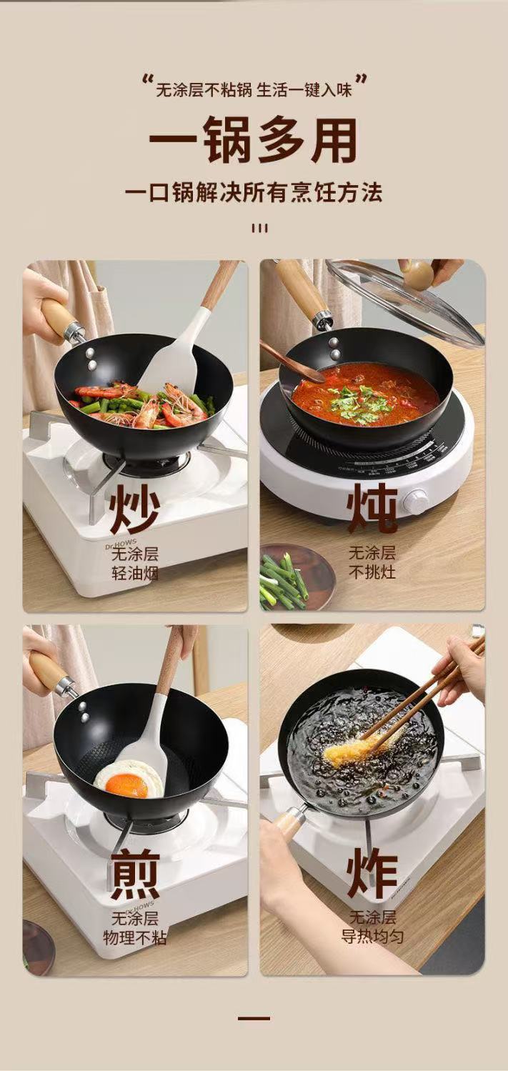 迷你小铁锅电磁炉家用炒锅燃气专用炒菜锅煎锅平底不粘锅无涂层