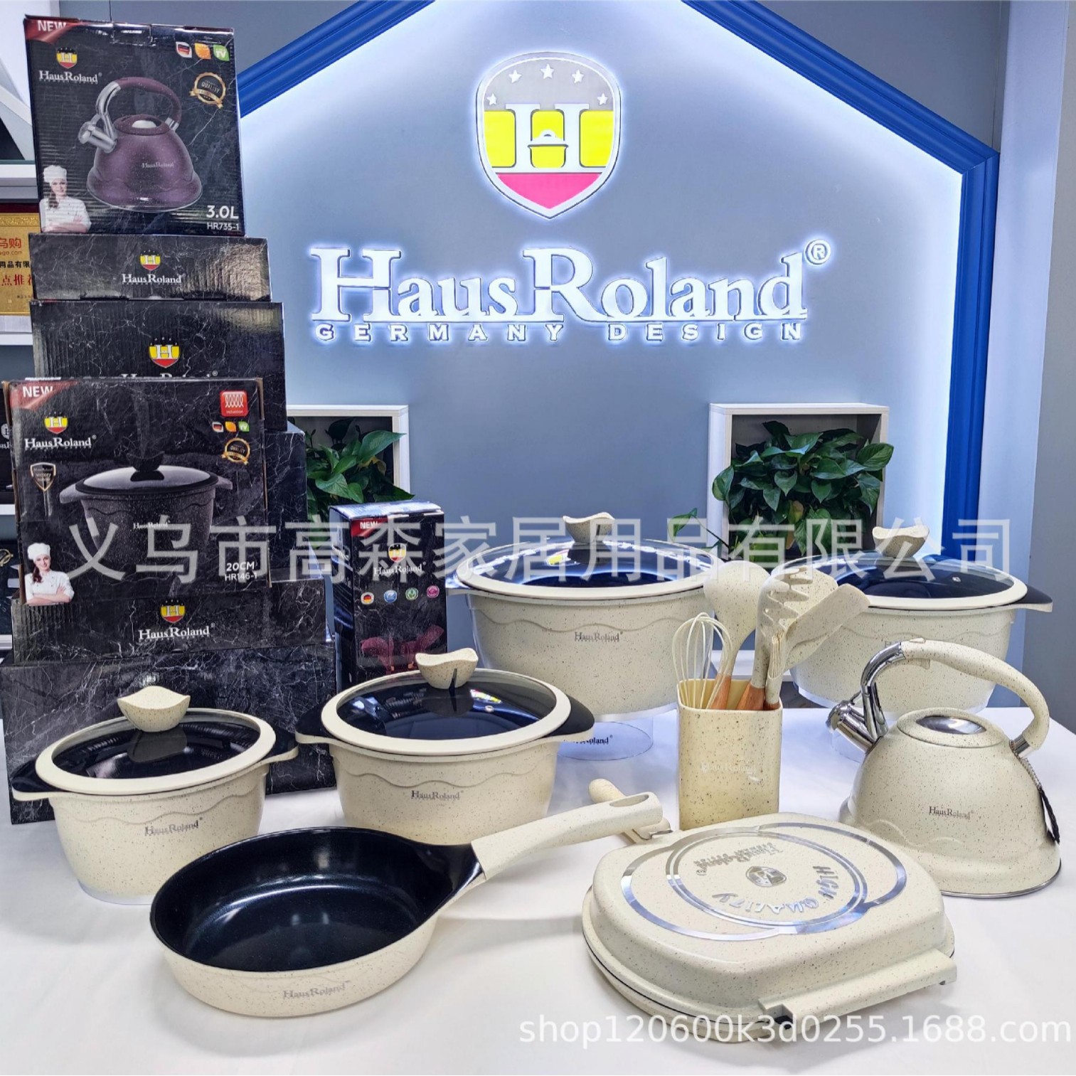 跨境麦饭石锅具套锅不粘锅家用炖锅煎盘水壶厨具套装铝制