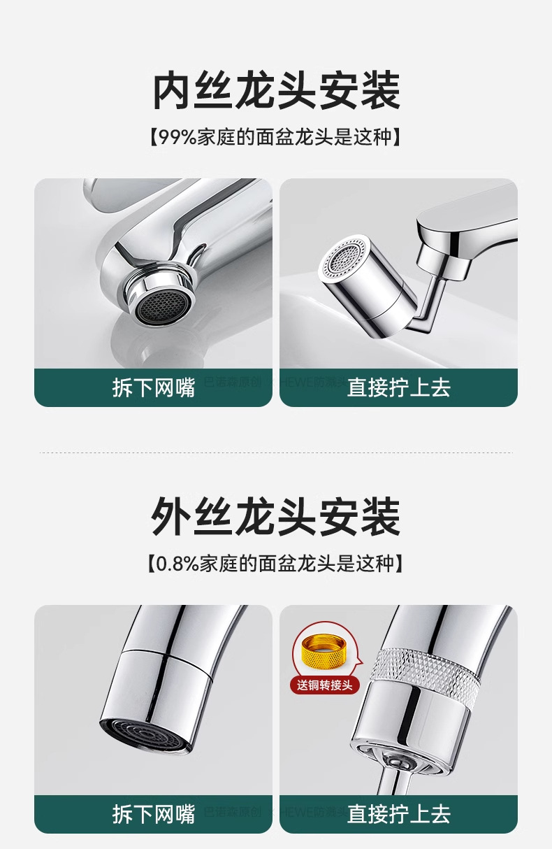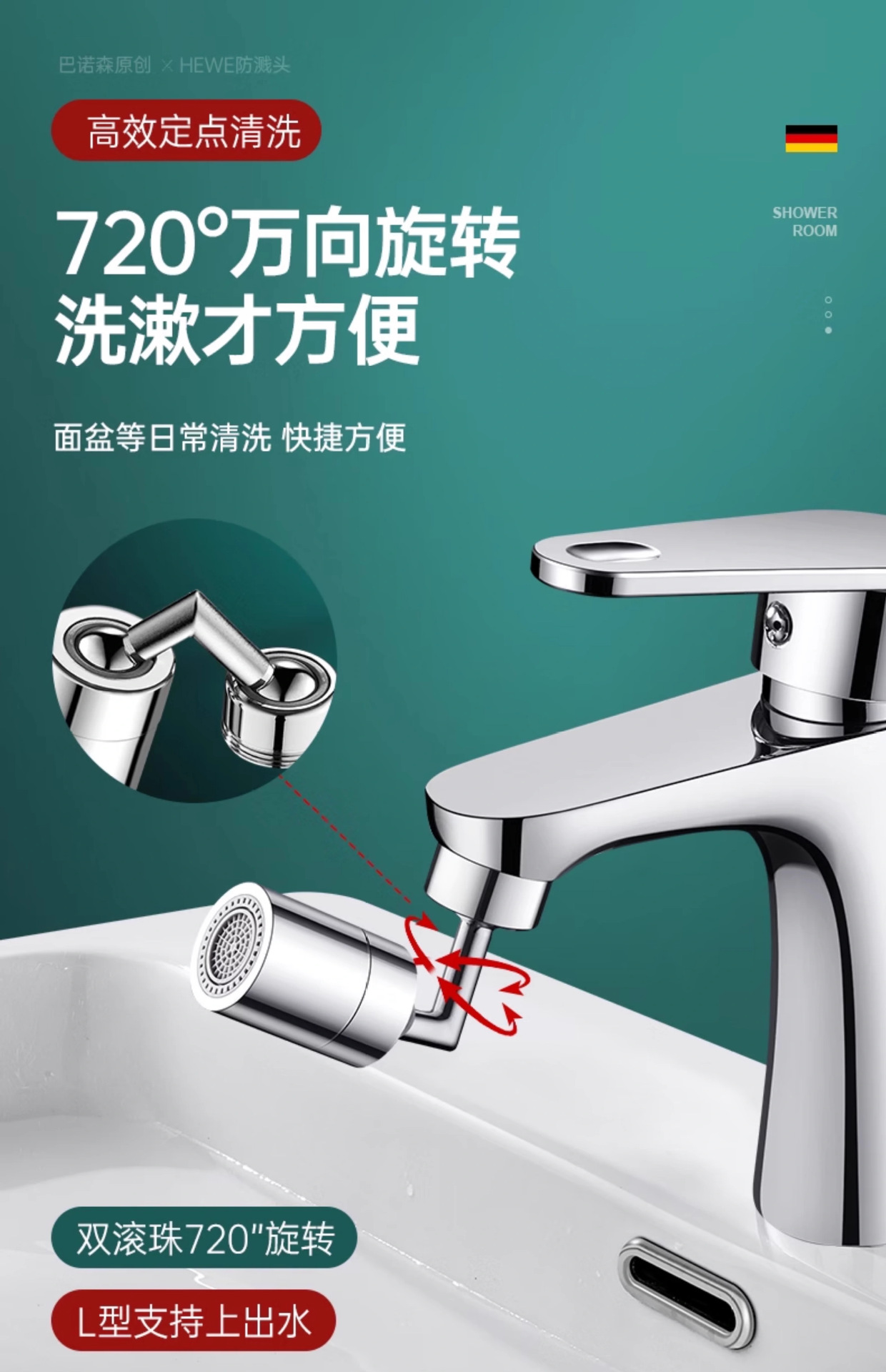 洗脸盆全铜水龙头延伸器防溅水神器加长面盆旋转起泡器万能接头