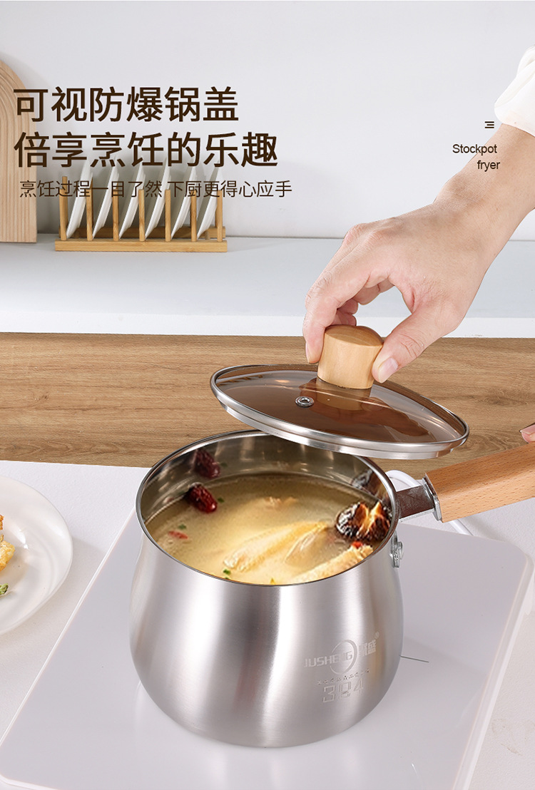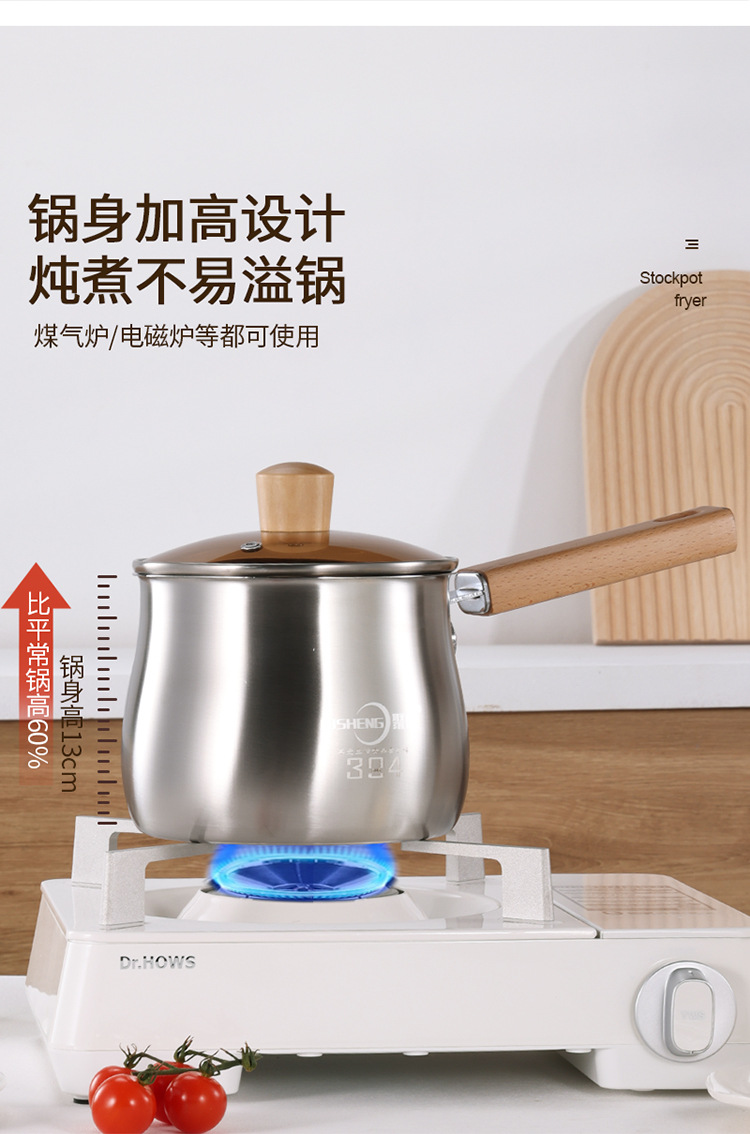 跨境temu 亚马逊304不锈钢奶锅汤锅家用烘焙巧克力融化锅加深奶锅
