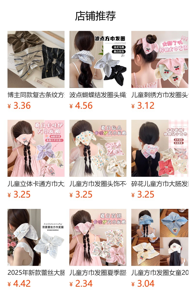 儿童方巾发圈女童2025新款高级感扎头发低马尾头绳小女孩洋气发饰