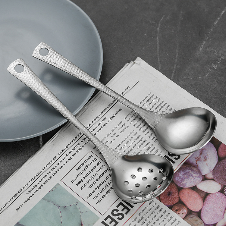 跨境不锈钢汤壳汤漏两件套高颜值鱼鳞柄家用火锅勺汤勺漏勺盛汤勺