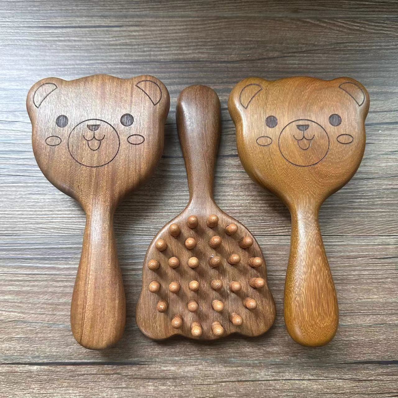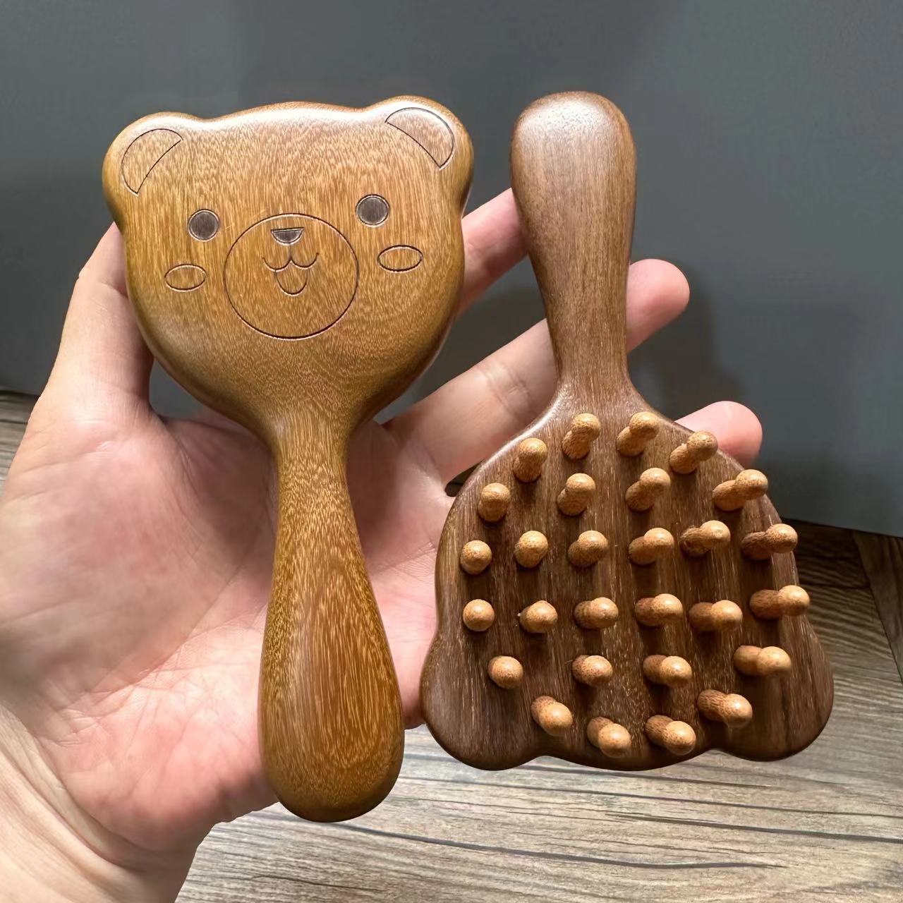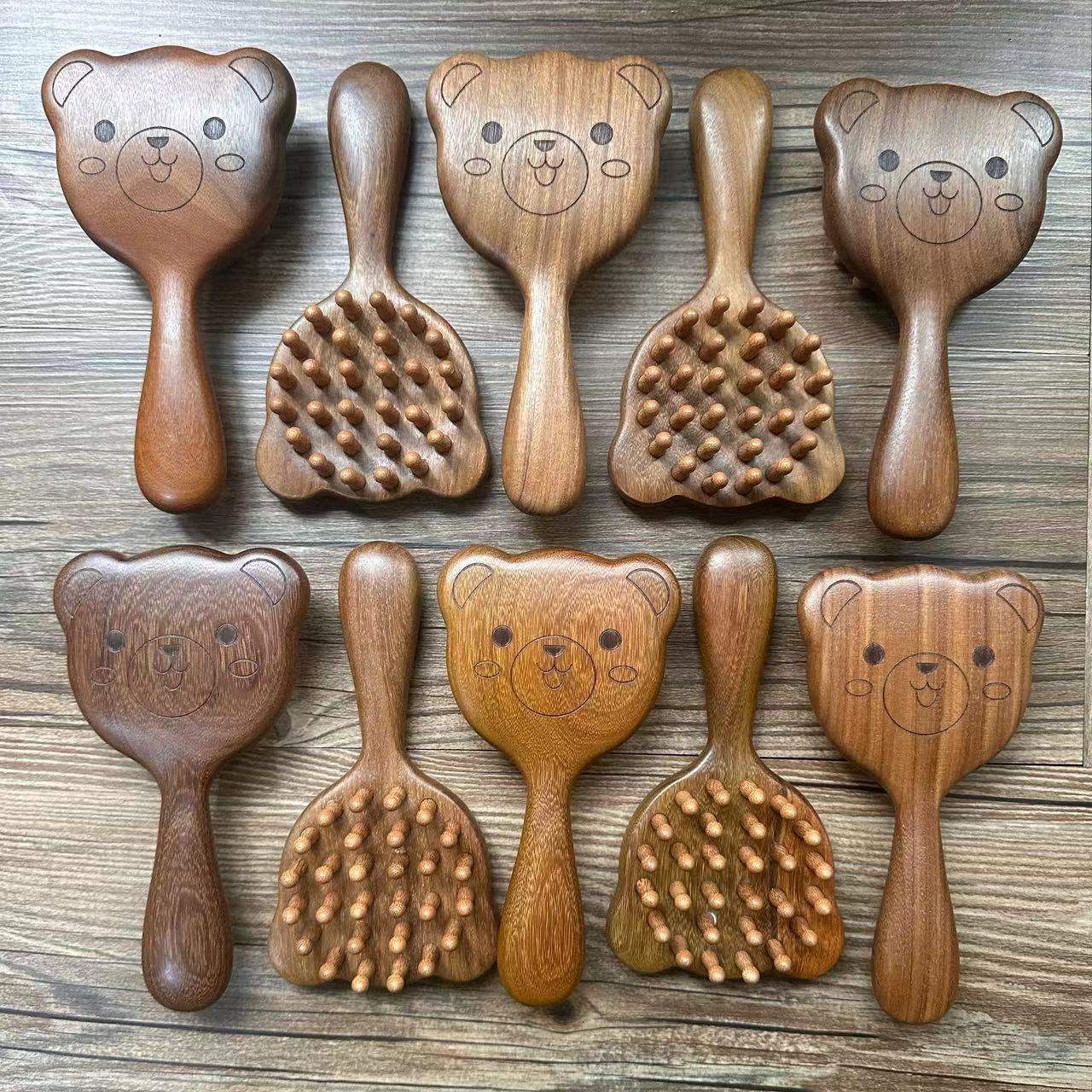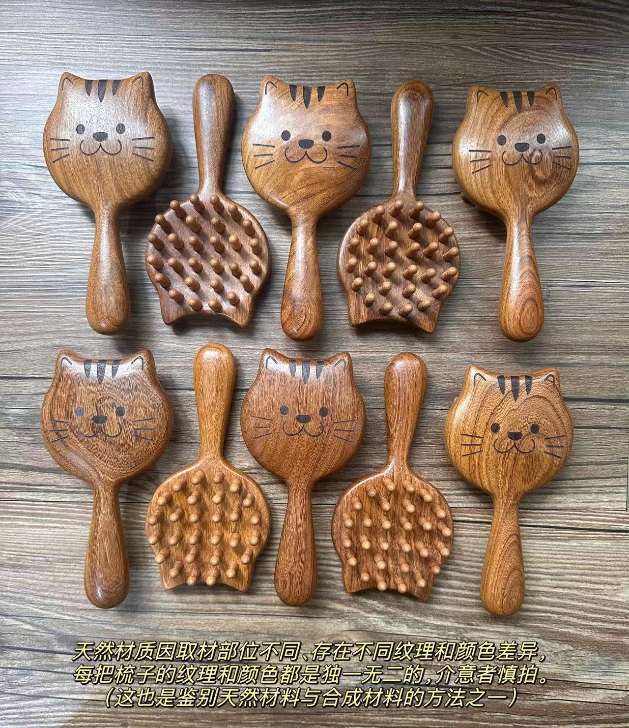 网红黑金丝檀木经络梳小猫按摩梳头皮便携女士顺发梳子女工厂批发