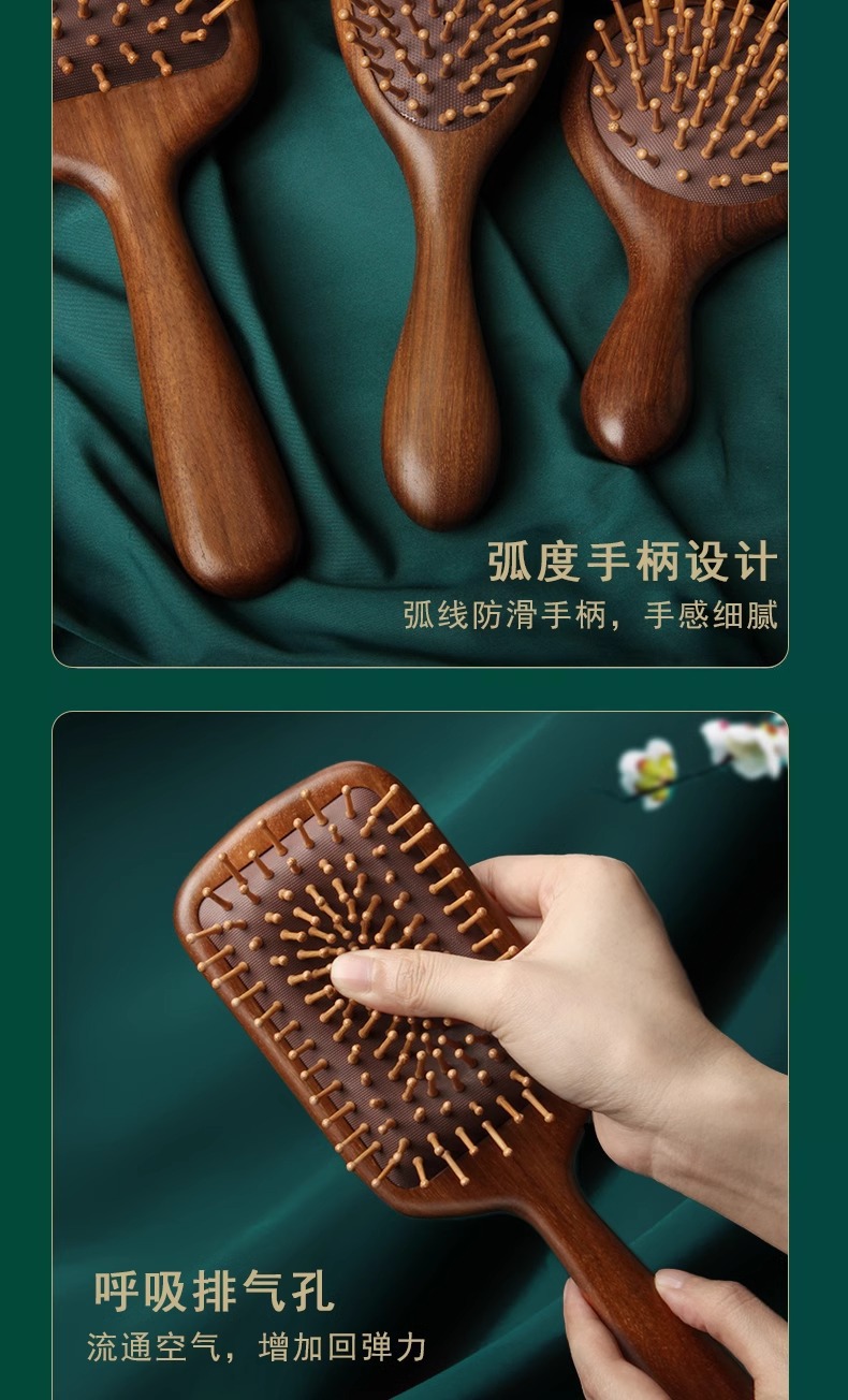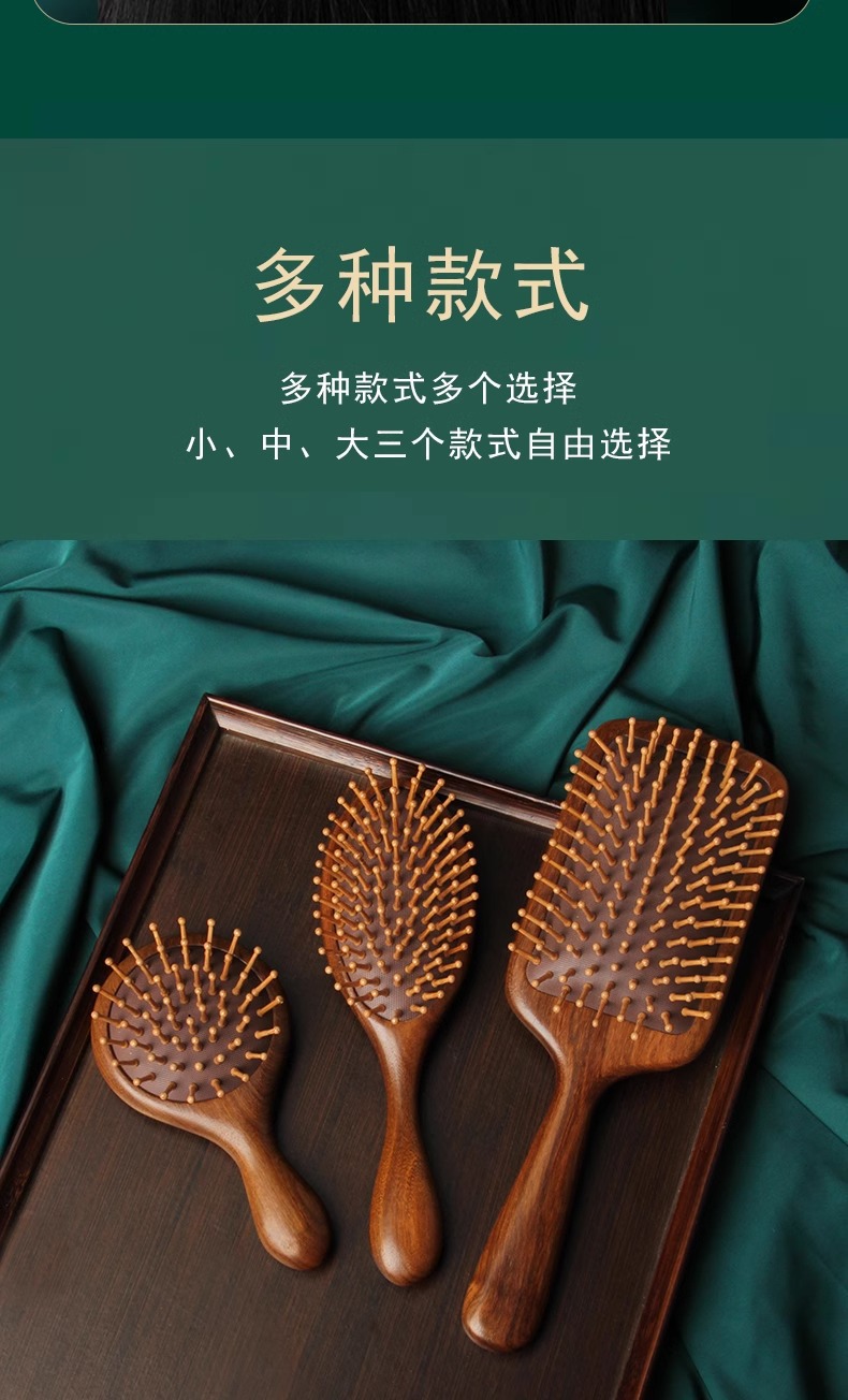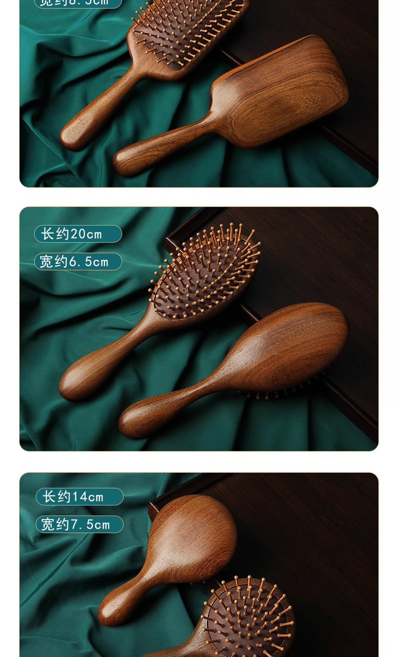 金丝檀木气囊梳经络按摩梳美发梳气囊家用按摩梳圆柄头皮顺发梳子