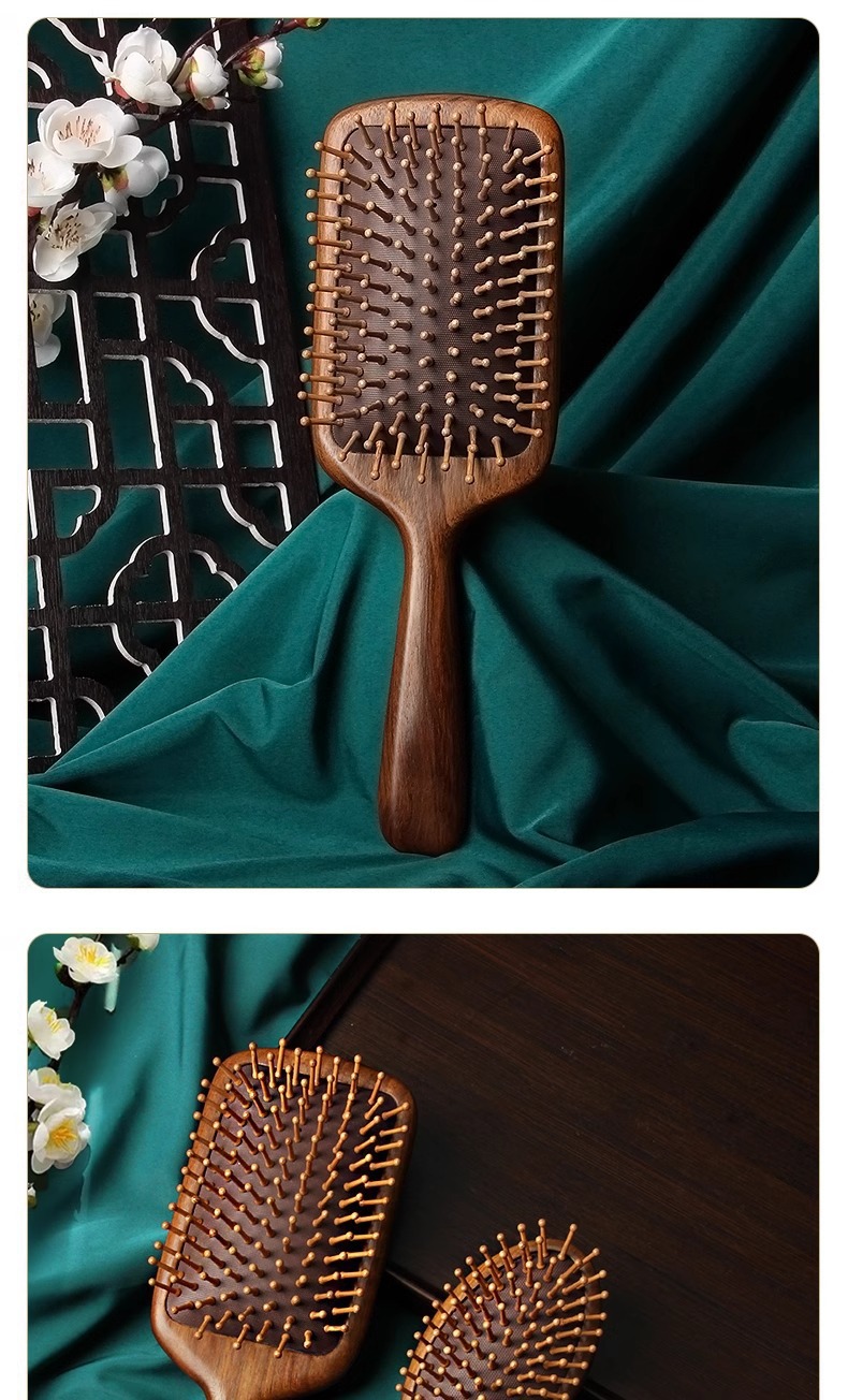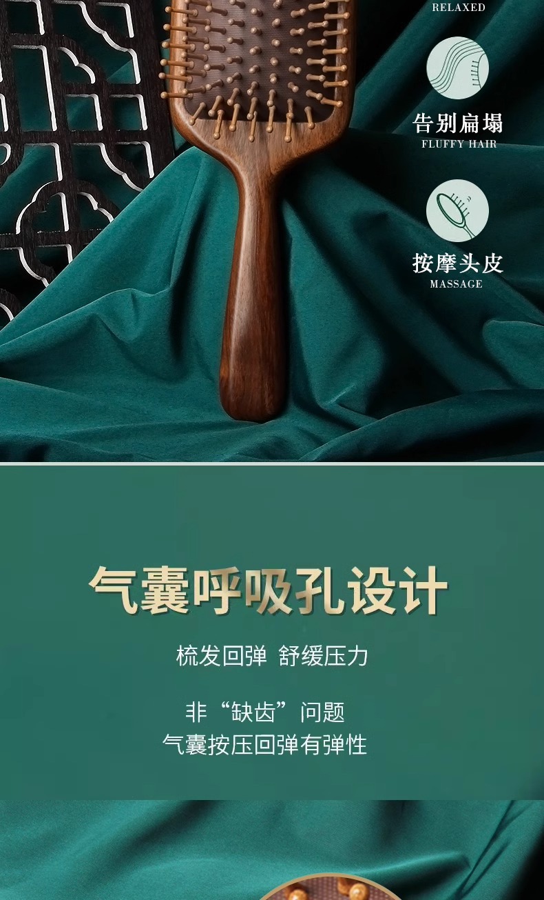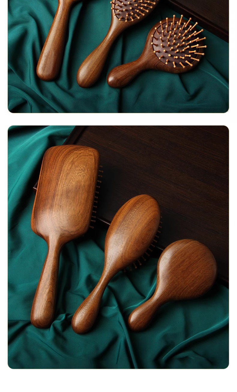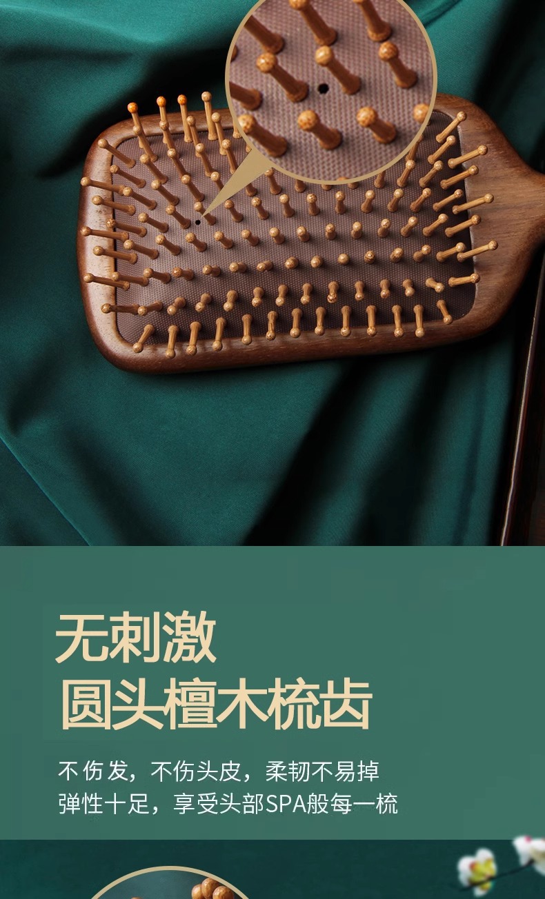 金丝檀木气囊梳经络按摩梳美发梳气囊家用按摩梳圆柄头皮顺发梳子
