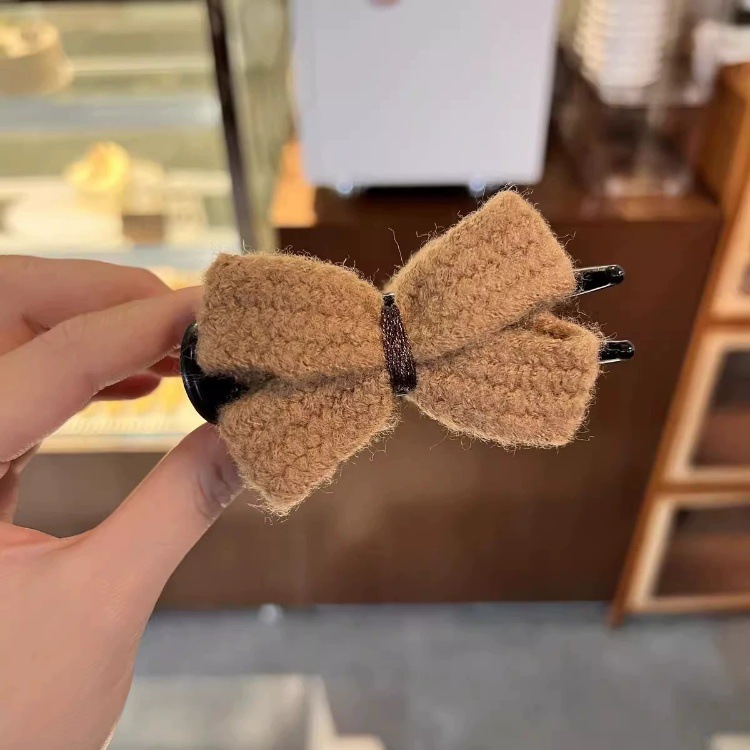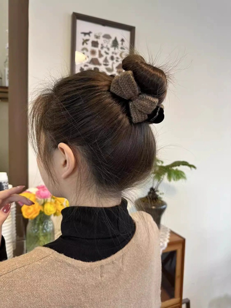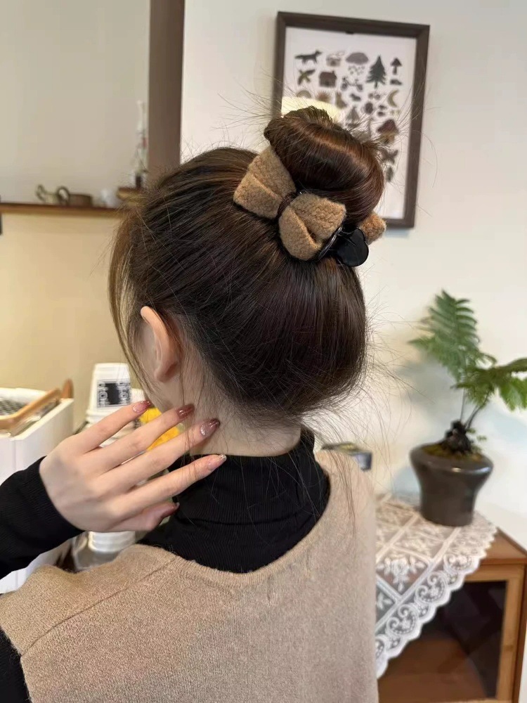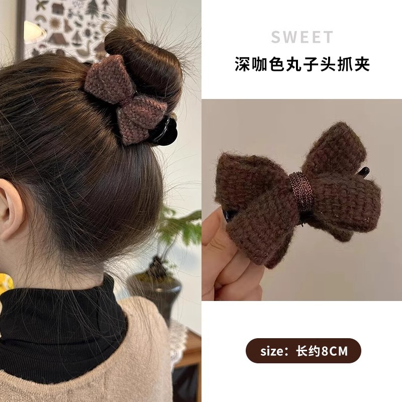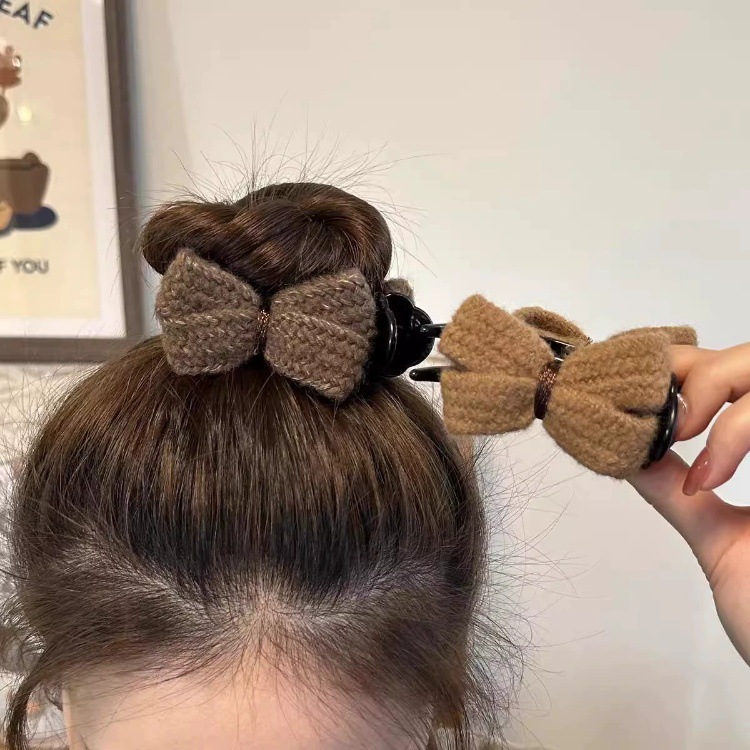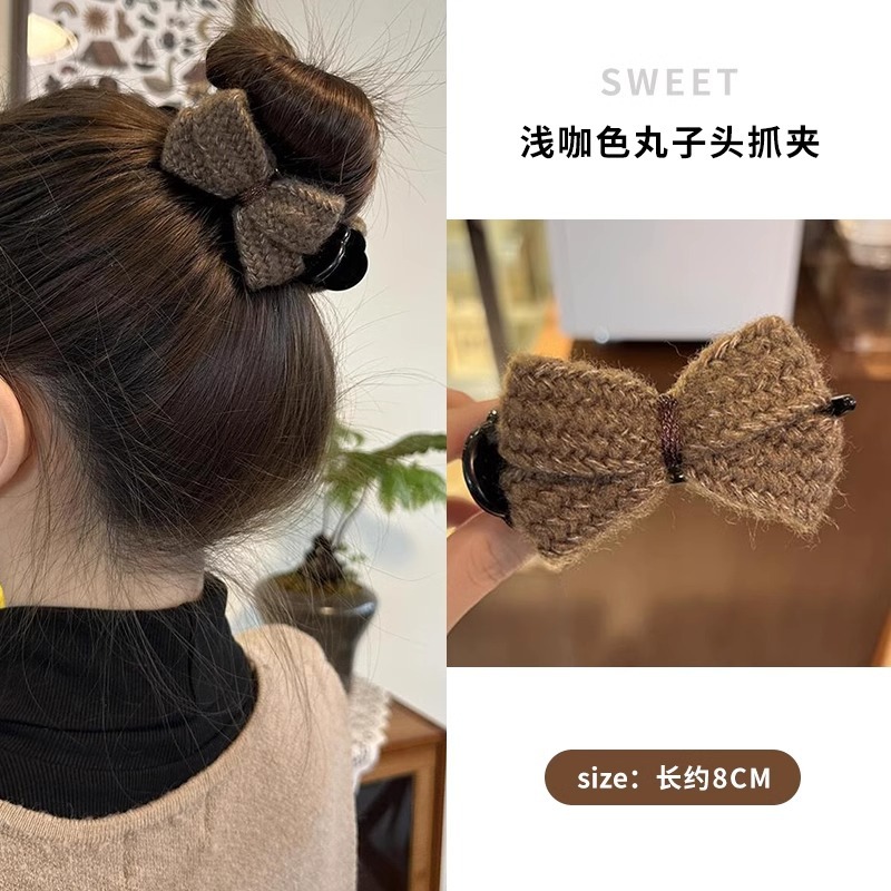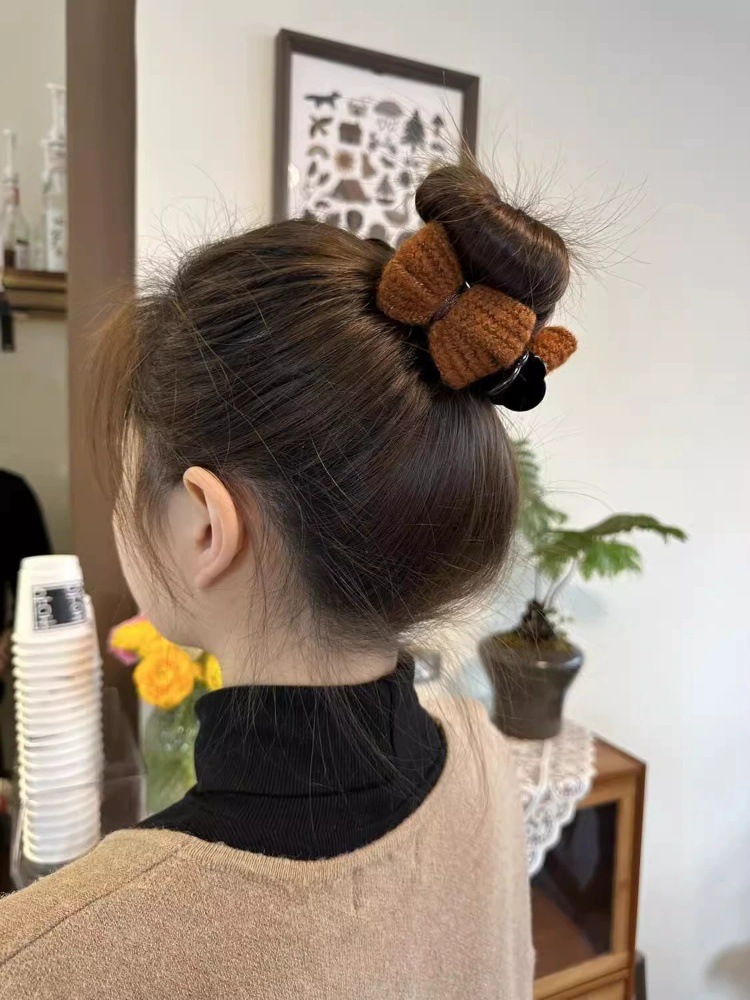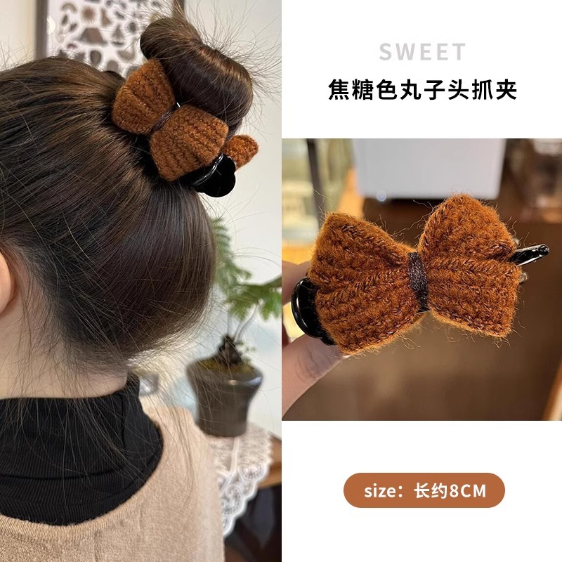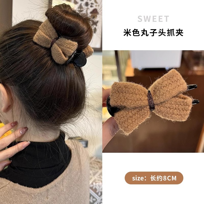冬季新款针织发夹女奶咖色甜美休闲百搭蝴蝶结发卡盘发丸子头可用