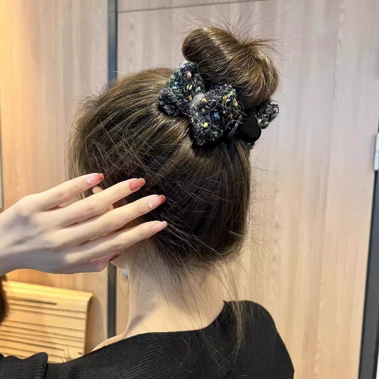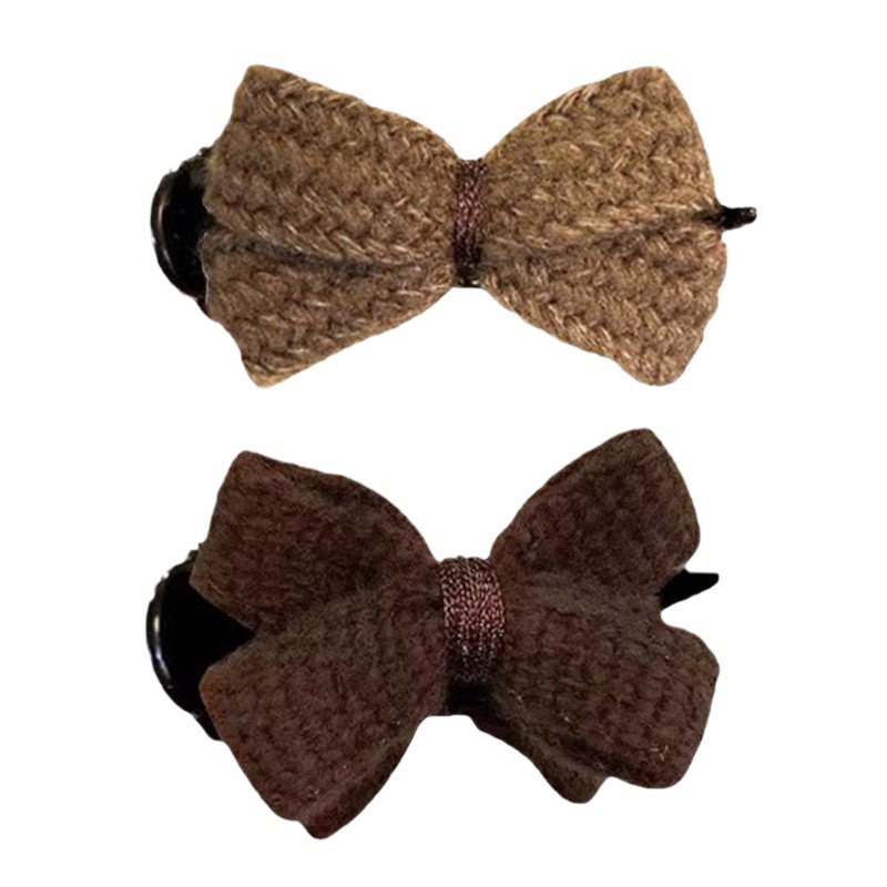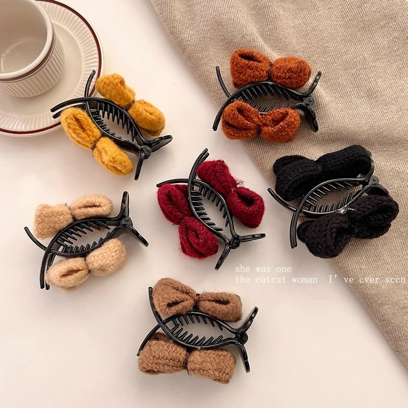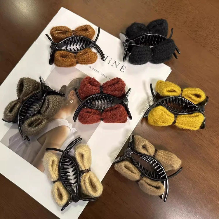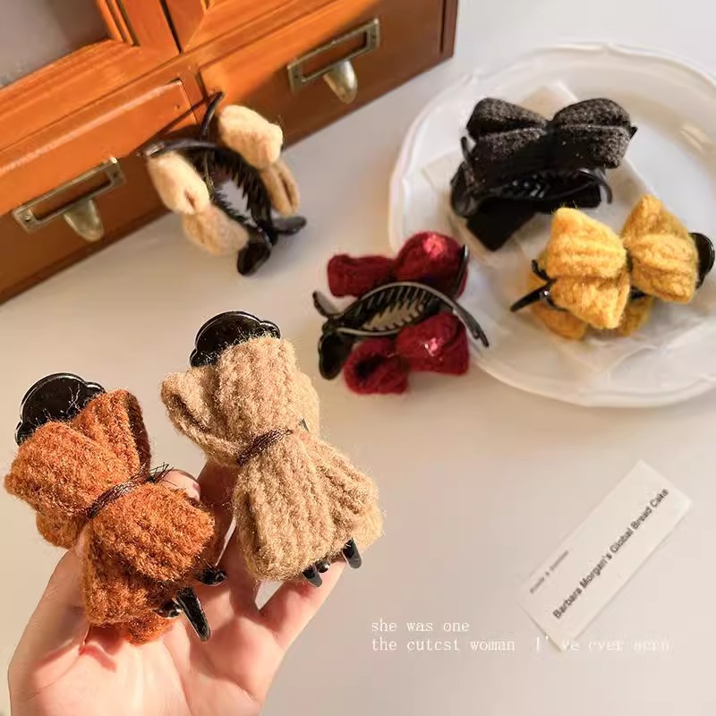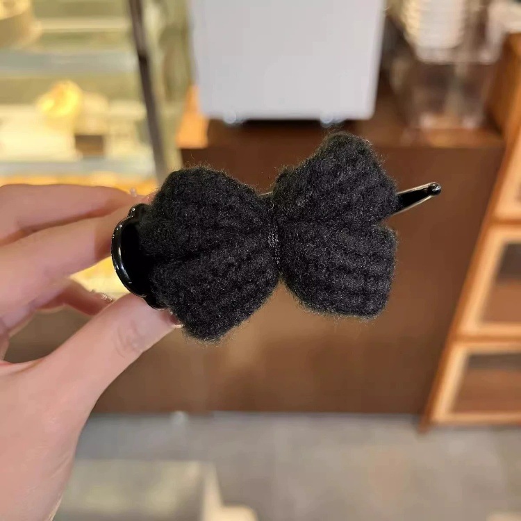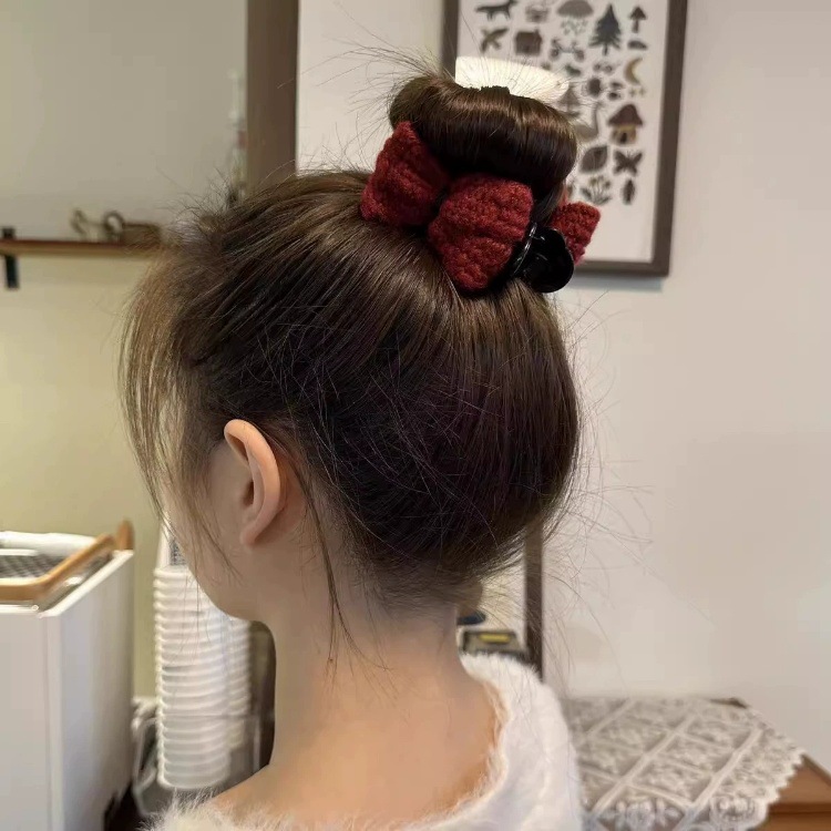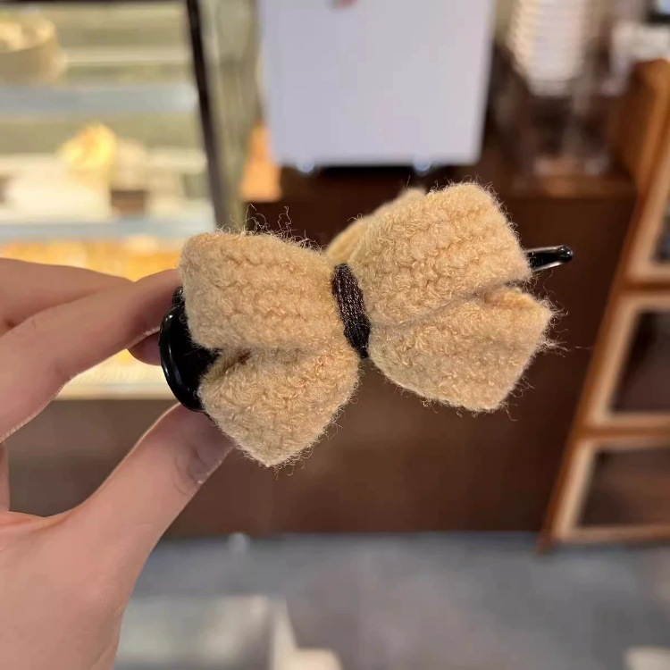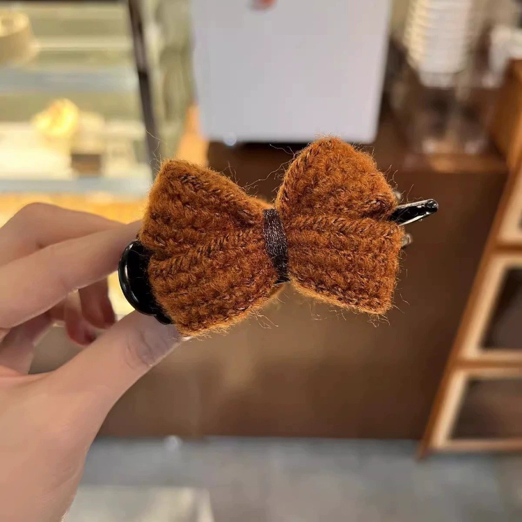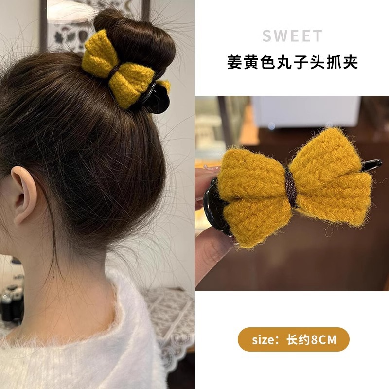冬季新款针织发夹女奶咖色甜美休闲百搭蝴蝶结发卡盘发丸子头可用