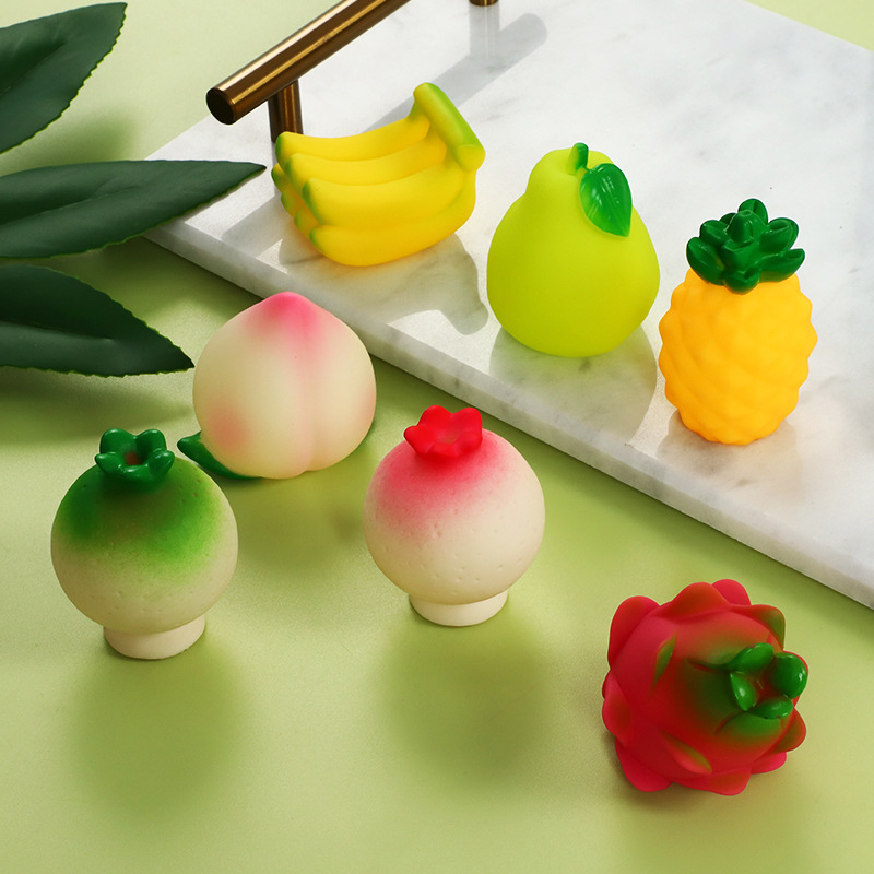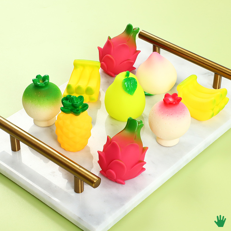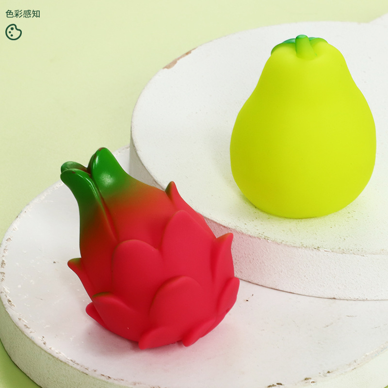 宝宝洗澡玩具可咬软胶仿真水果捏捏叫婴儿童戏水汽车早教捏响蔬菜