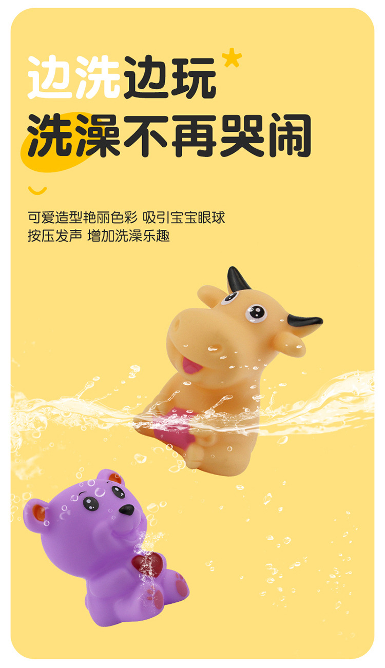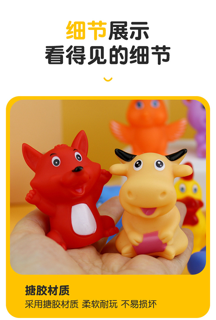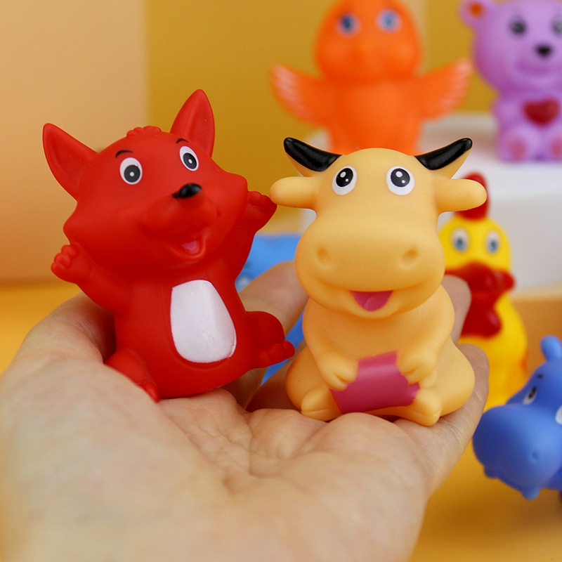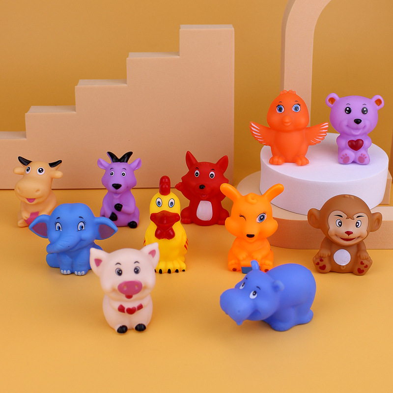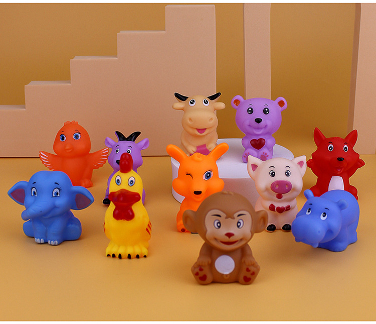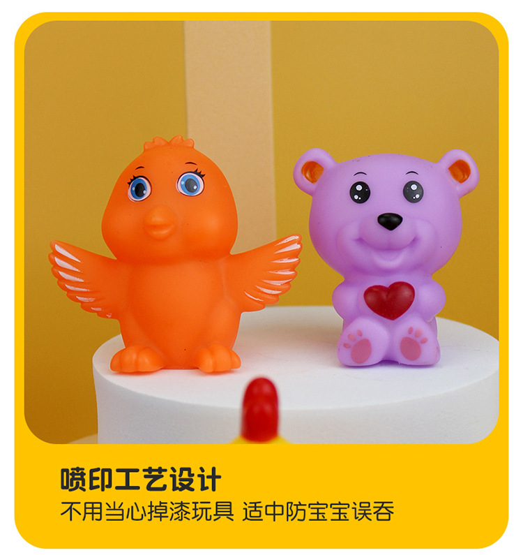 搪胶儿童捏捏叫戏水玩具浴室洗澡森林陆地组合玩具捏捏叫小动物