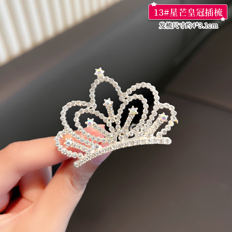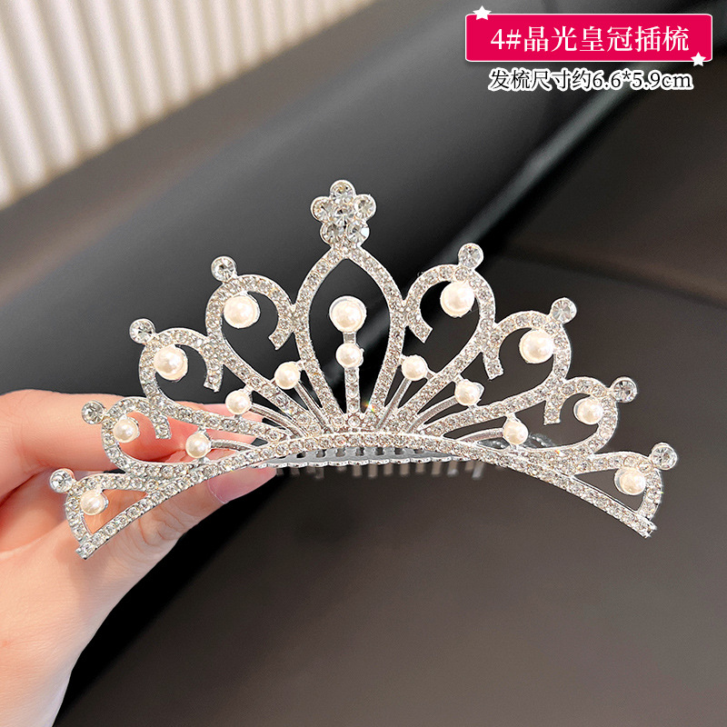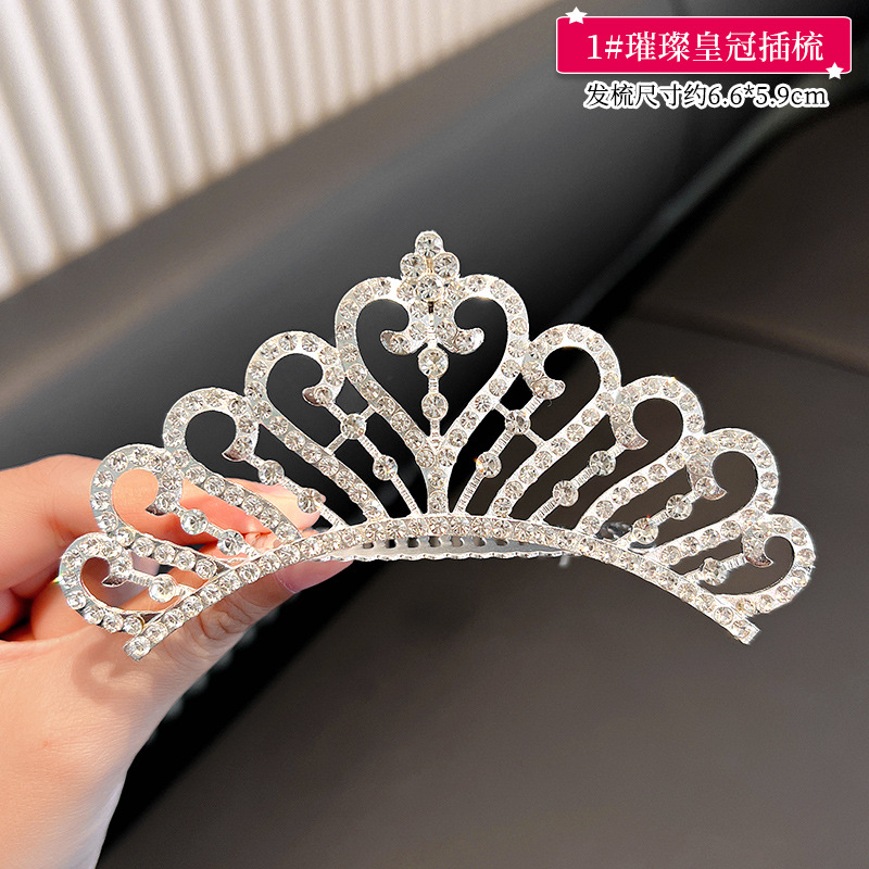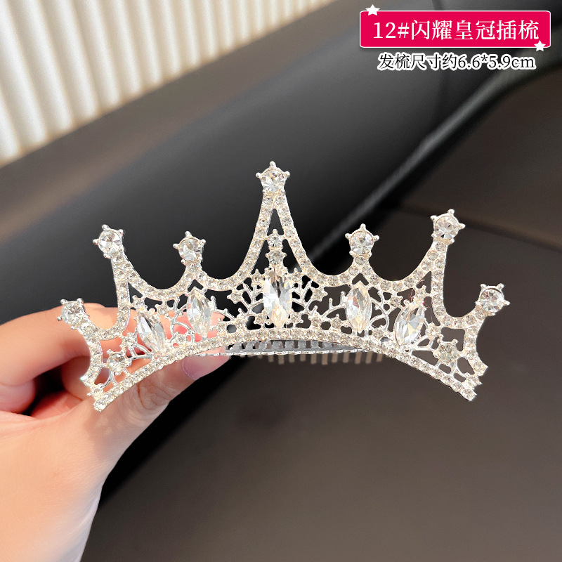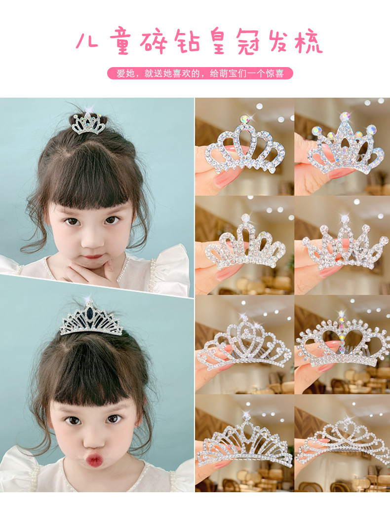 儿童王冠发夹宝宝碎发梳公主皇冠头饰小女孩生日水钻插梳女童发饰