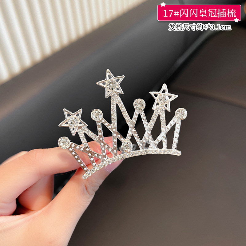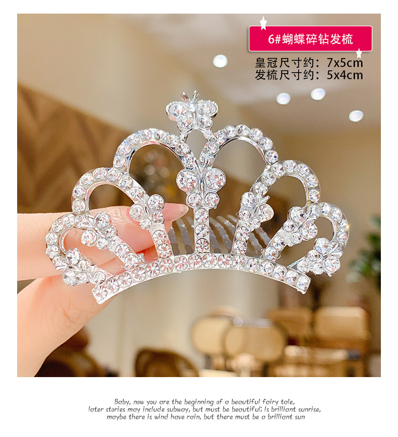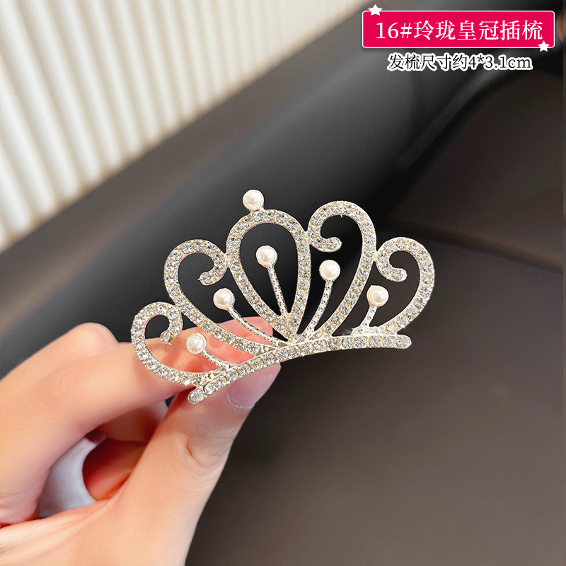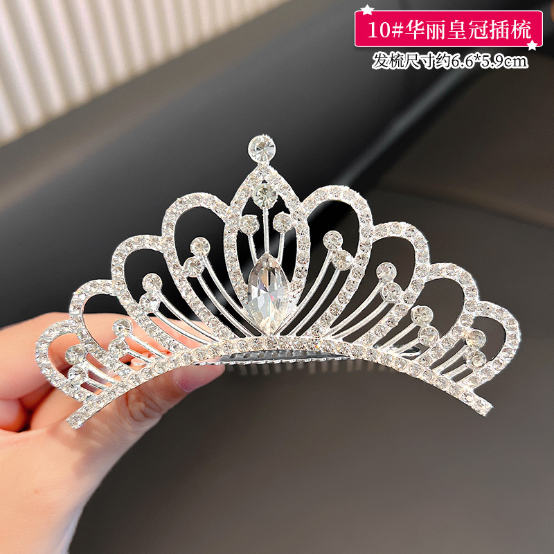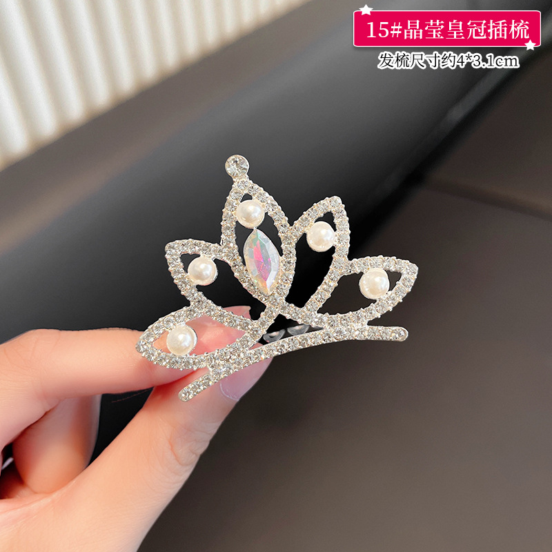 儿童王冠发夹宝宝碎发梳公主皇冠头饰小女孩生日水钻插梳女童发饰