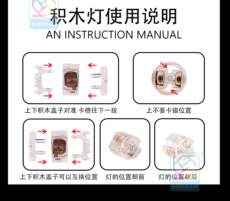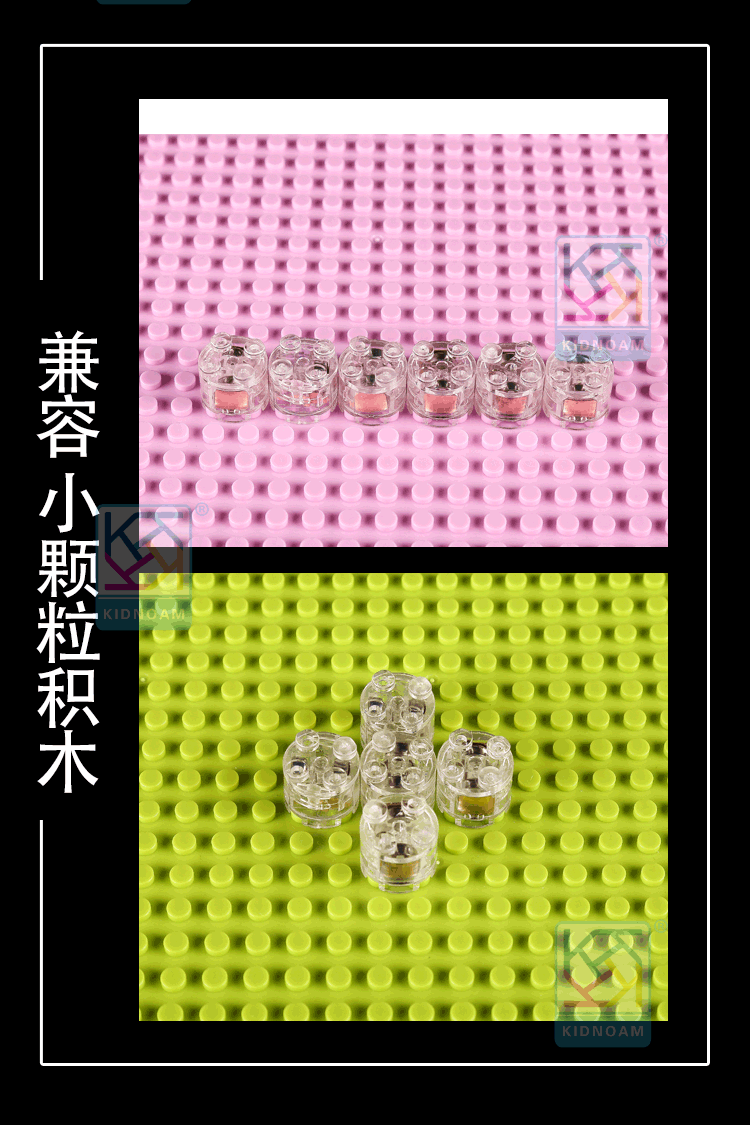 小颗粒2*2圆形积木灯配件DIY益智积木玩具LED灯七彩闪光玩具配件