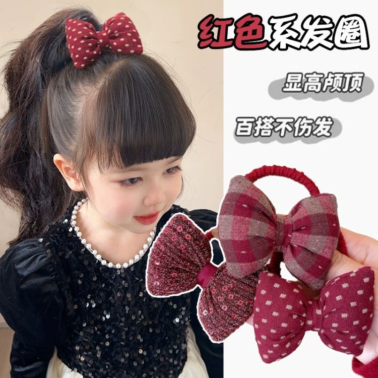 蝴蝶结发圈儿童发饰可爱女童高马尾头绳皮筋高弹力不伤发新年头饰