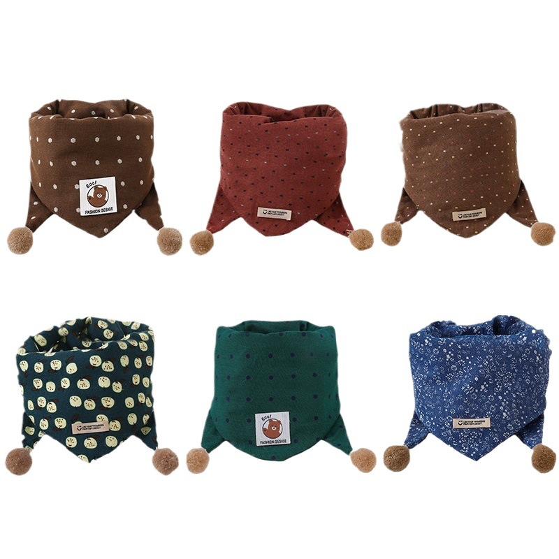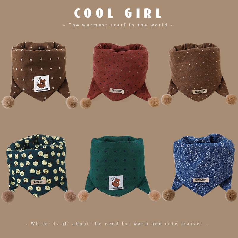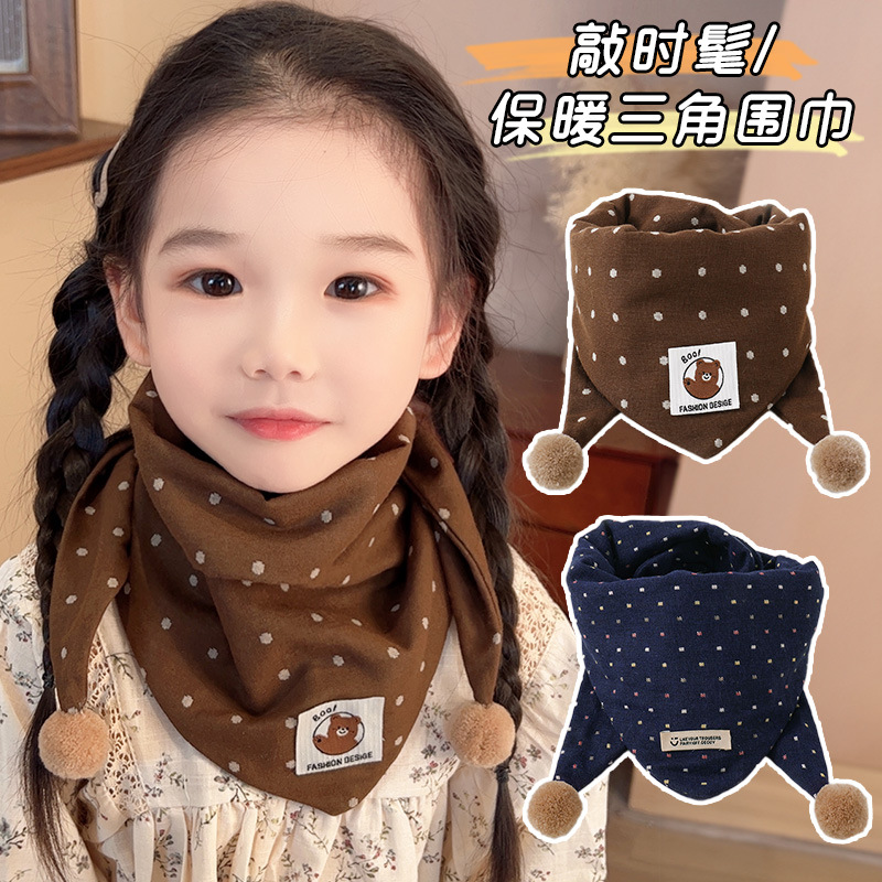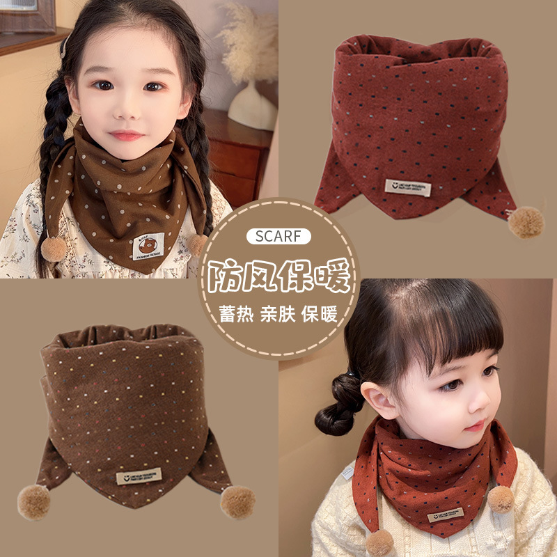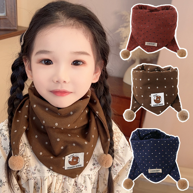 儿童围巾防风保暖卡通围脖宝宝防寒脖套秋冬款女童可爱波点三角巾