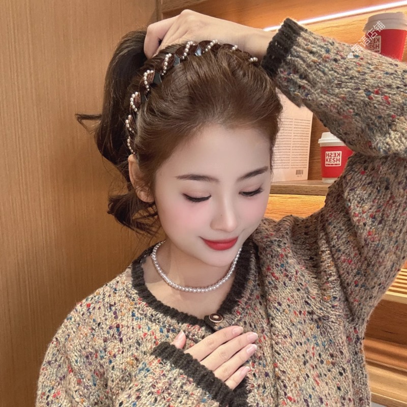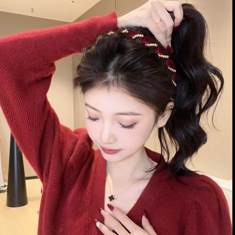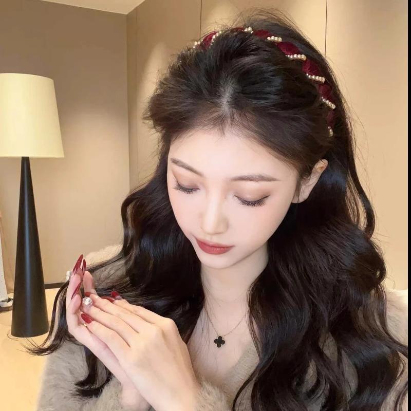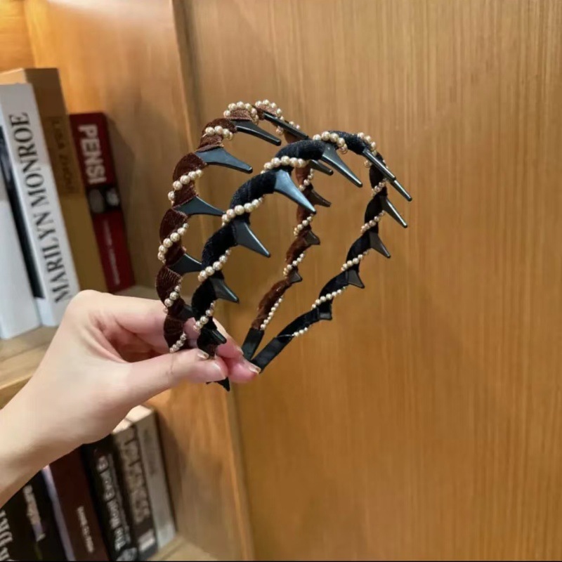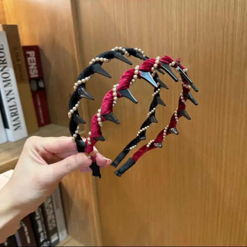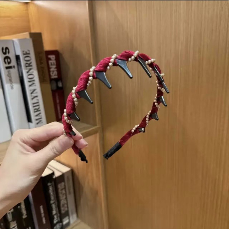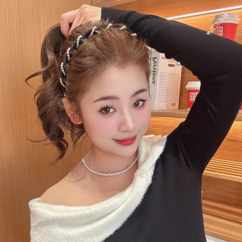 气质高颅顶带齿发箍珠珠显发量女新款秋冬发卡不勒头洗脸头箍发饰