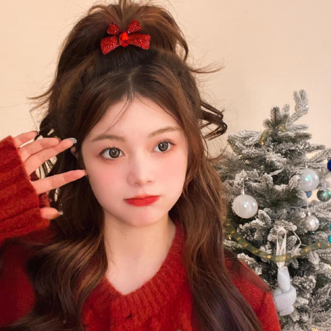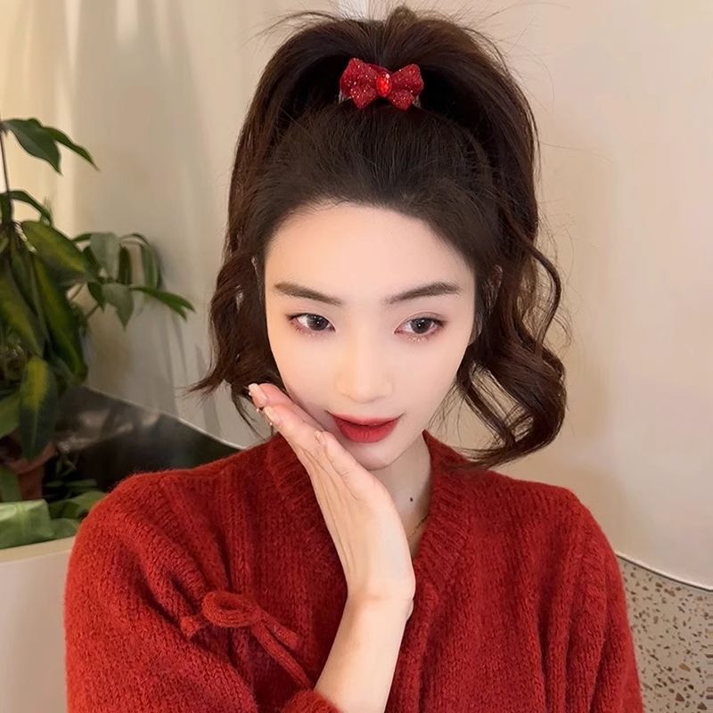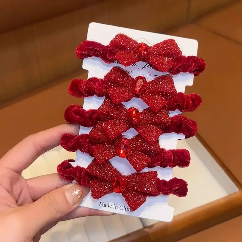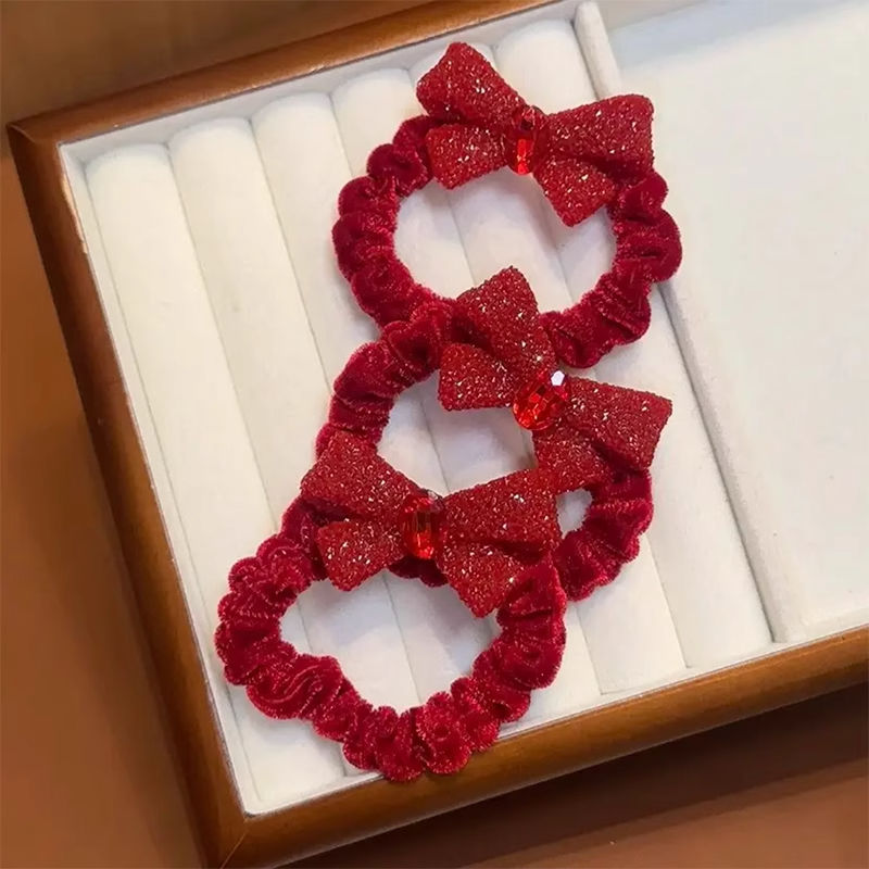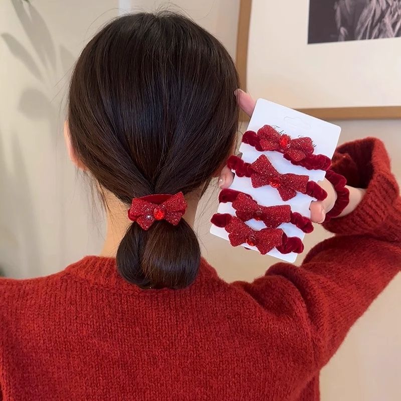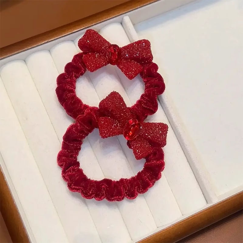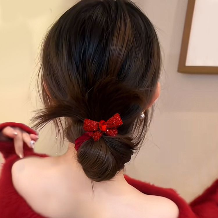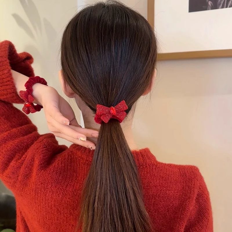 红色蝴蝶结闪钻头绳2025新款橡皮筋女扎头发绳喜庆丸子头发圈头饰