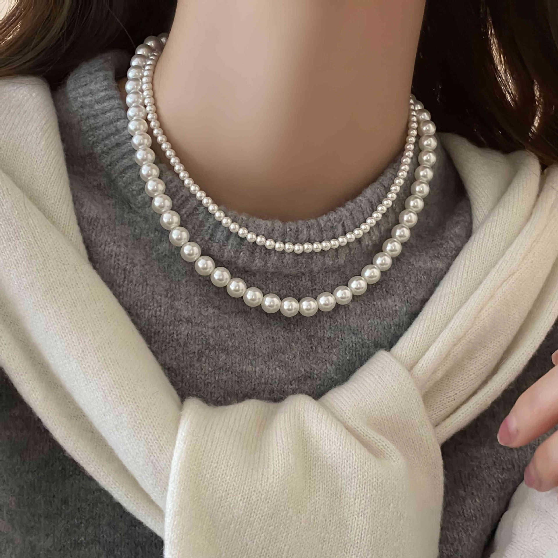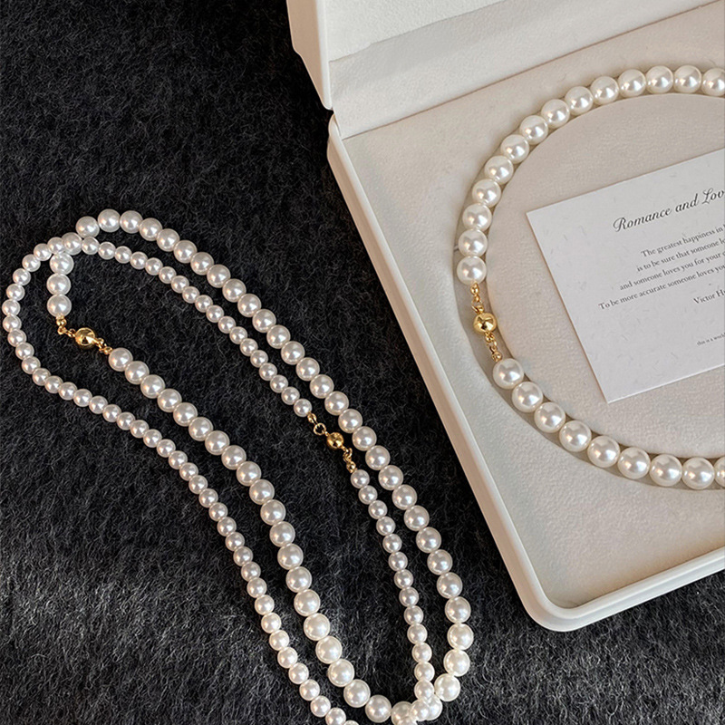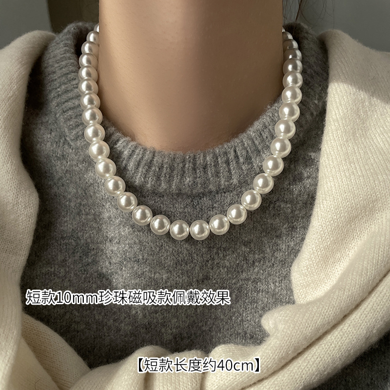 施家澳白磁吸扣正圆珍珠项链女2025新款叠戴毛衣链轻奢气质脖颈链