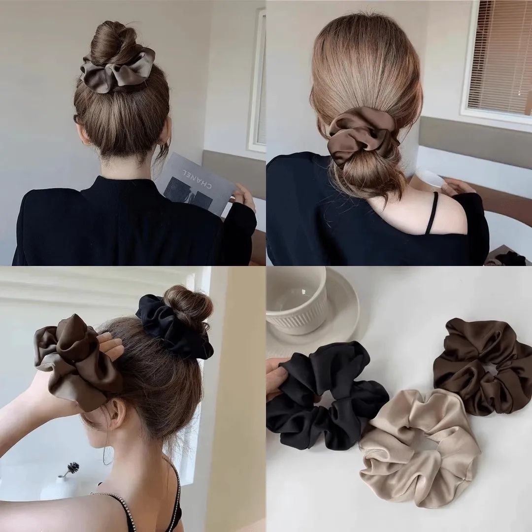 缎面感大肠发圈气质扎头绳女简约丸子头百搭头饰品高级感轻奢显白