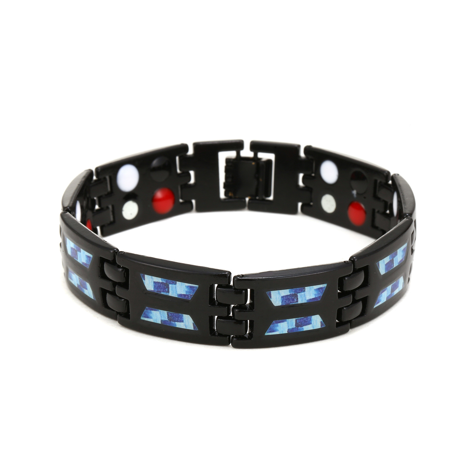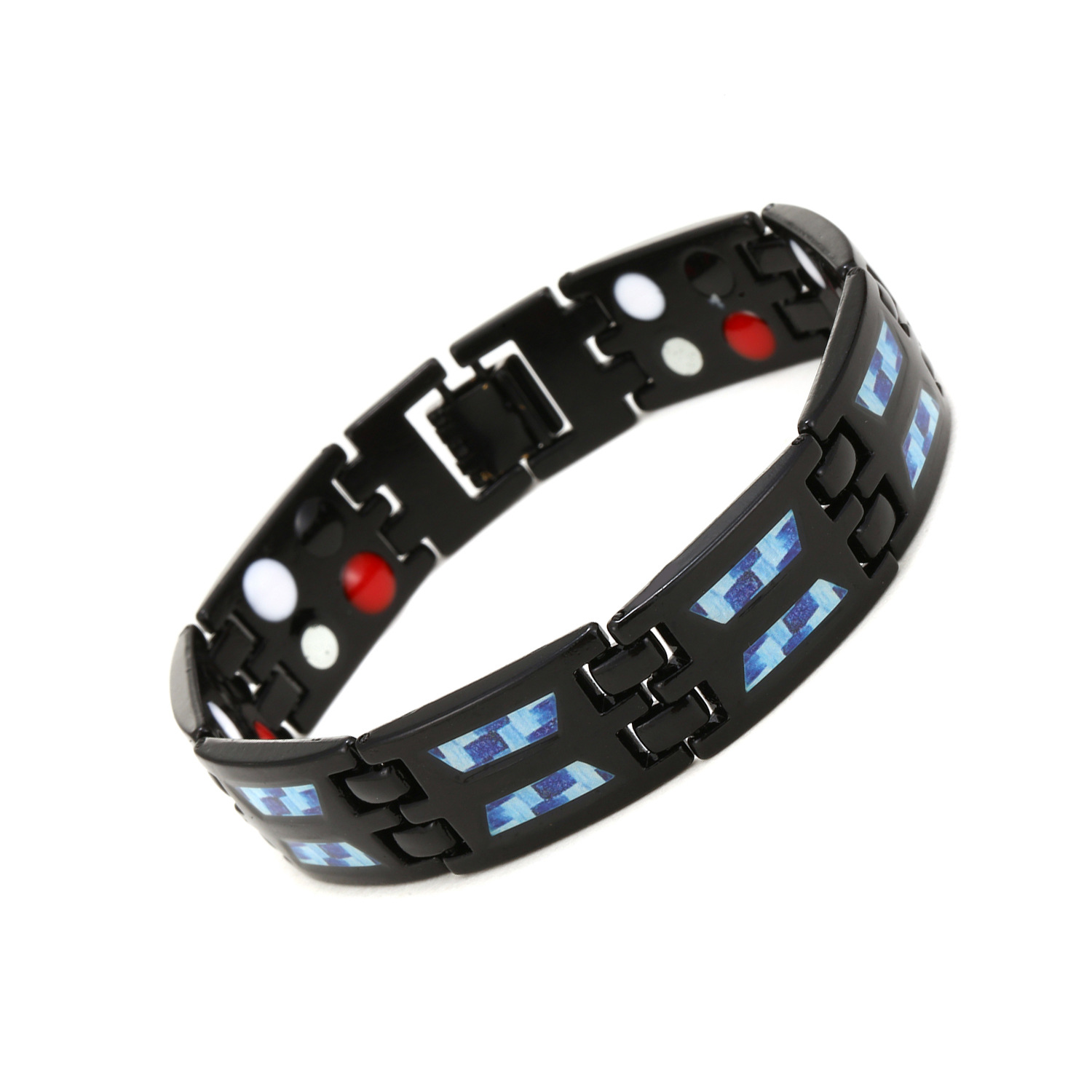 云锦 新款双排磁石手链 欧美时尚男士碳纤维贴纸手链跨境专供