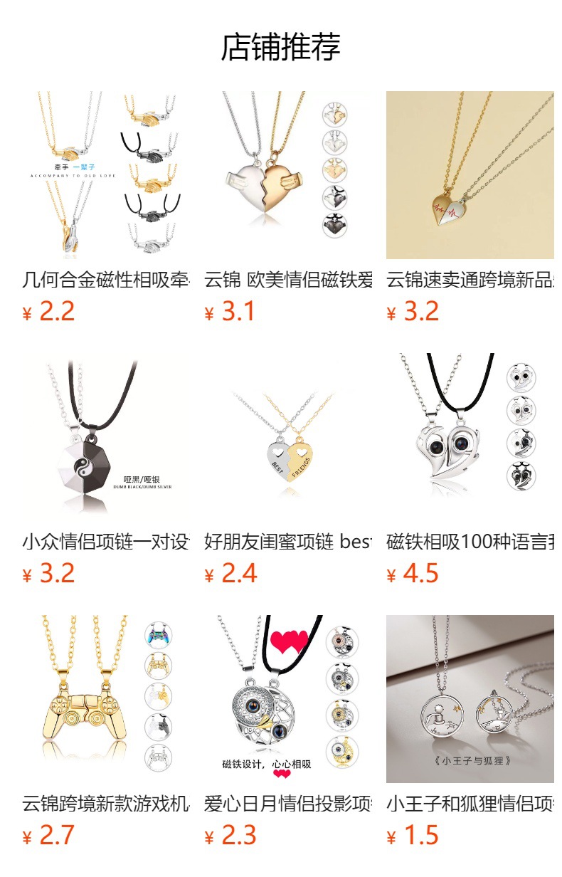 云锦 情侣爱心项吸铁石项链 许愿石吊坠心碎锁骨链心形项链